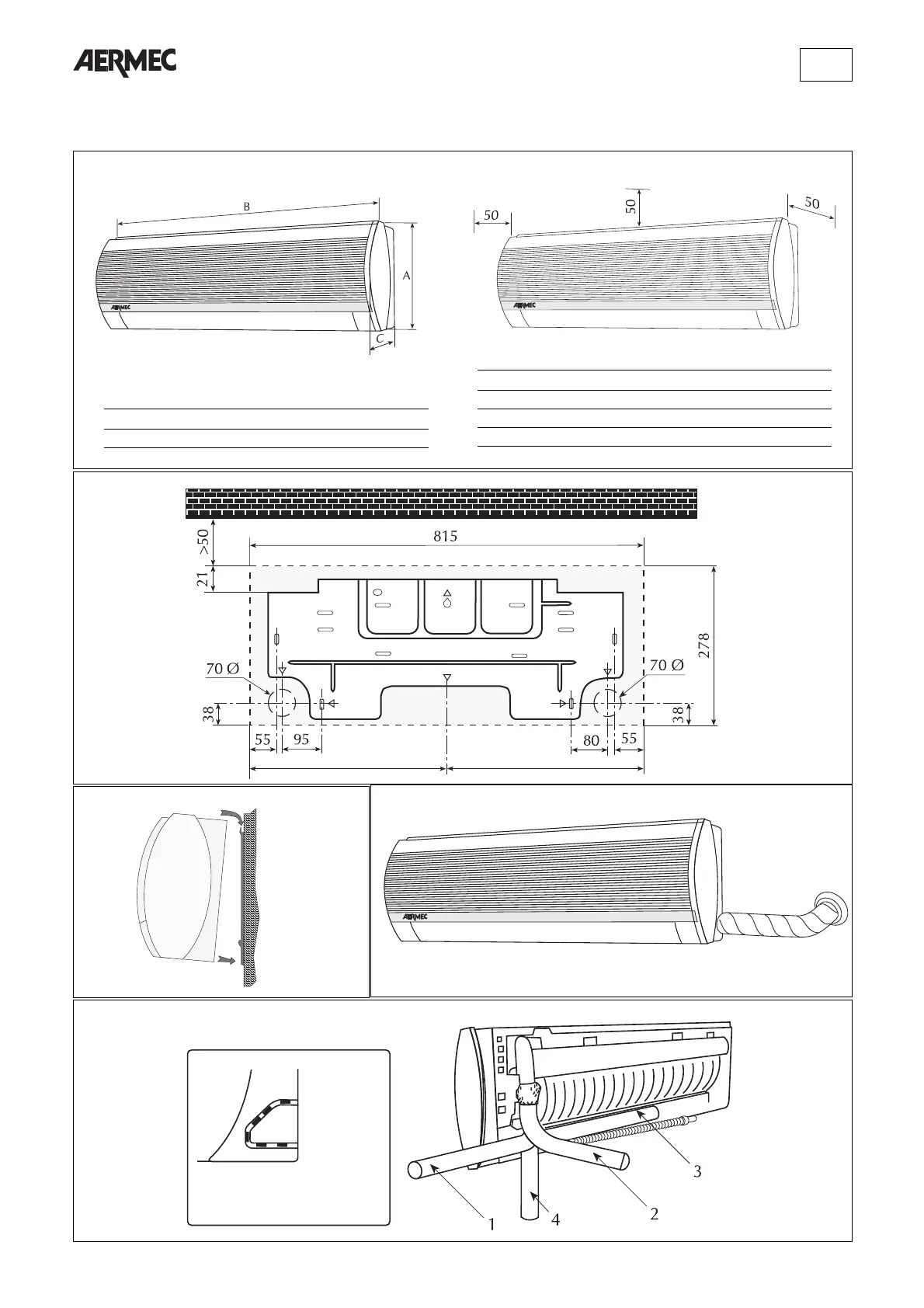 AERMEC EXW 120 - Dimensions and Minimum Technical Space