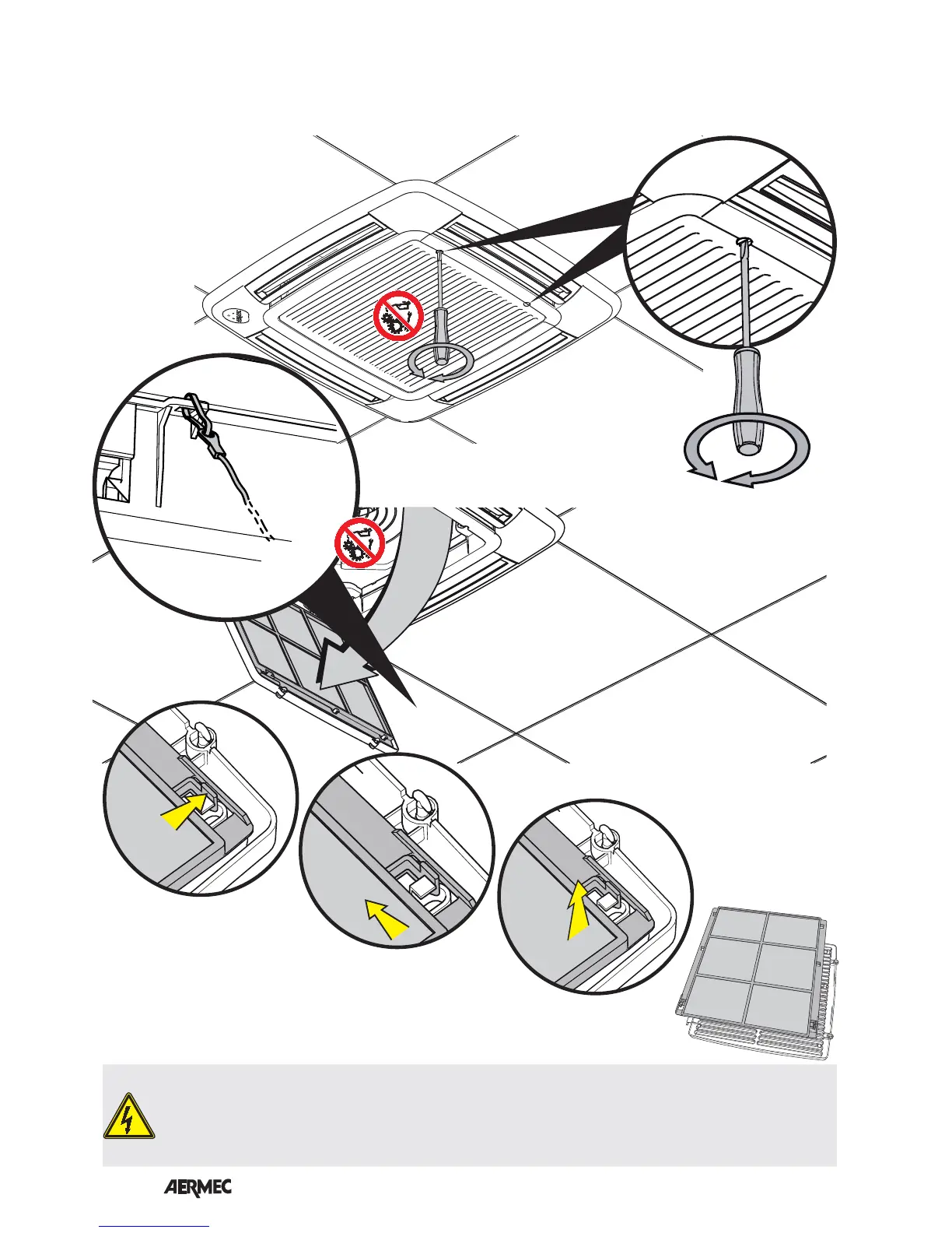 PERICOLO: Togliere tensione prima d’iniziare le operazioni di pulizia del filtro e/o dell’unità.