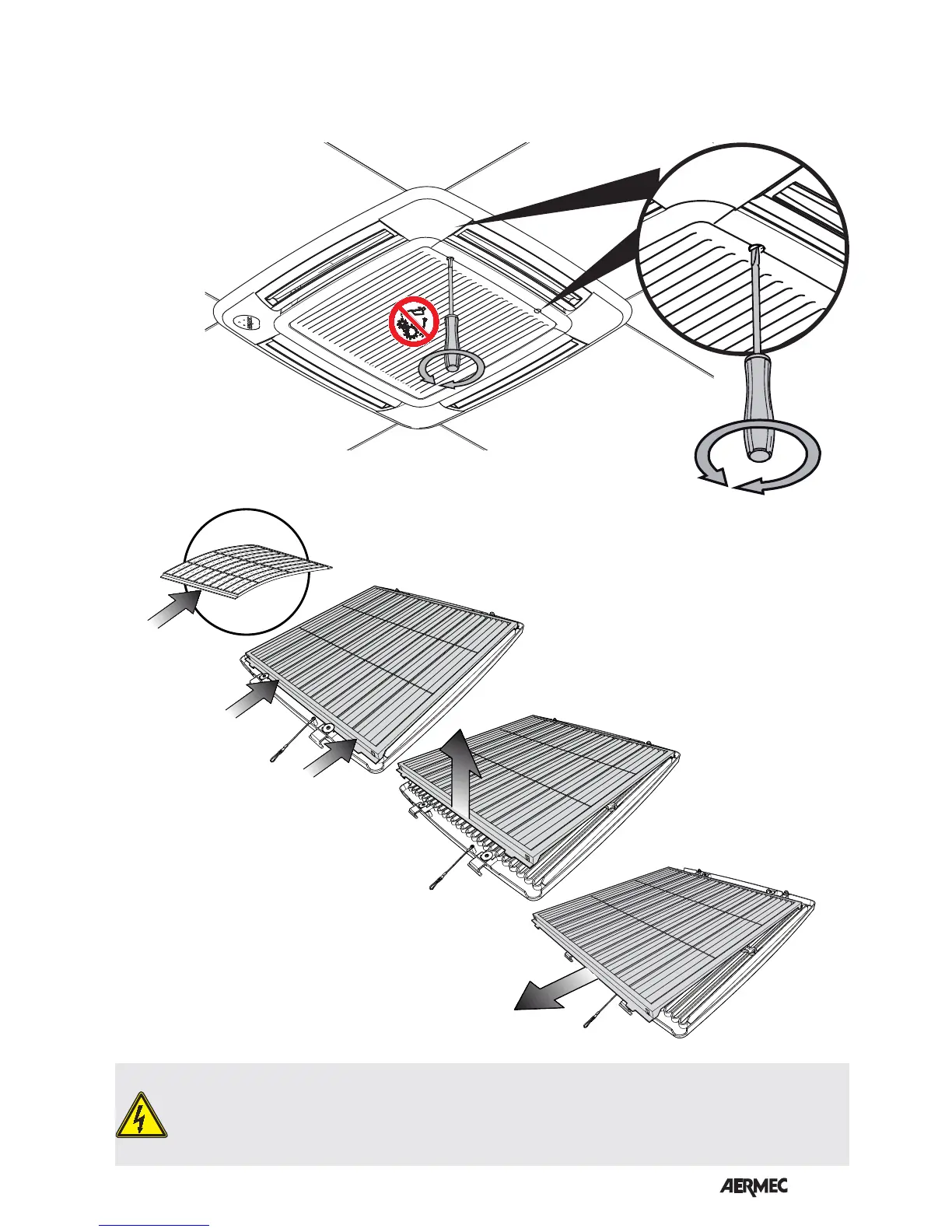PERICOLO: Togliere tensione prima d’iniziare le operazioni di pulizia del filtro e/o dell’unità.