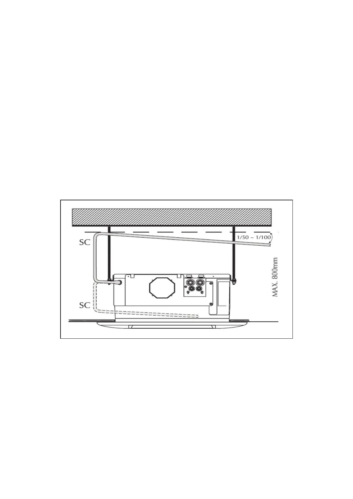 The pump allows a maximum head of 80cm from the level of the suspended ceiling, if this is not