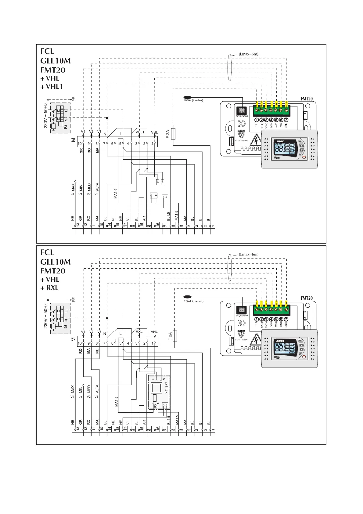 Wiring diagrams are constantly updated. It is therefore compulsory to refer to the ones supplied with the unit.