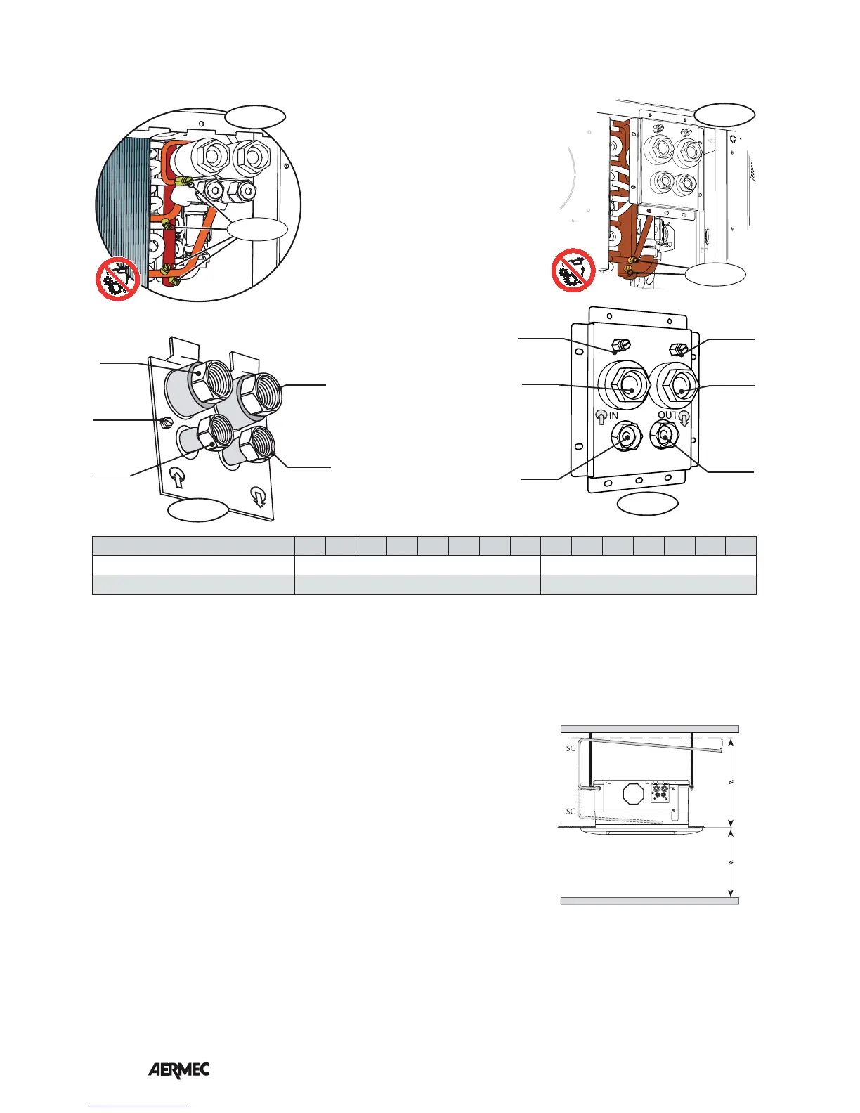 The water, condensate drainage and electrical circuit ducts must be provided for.