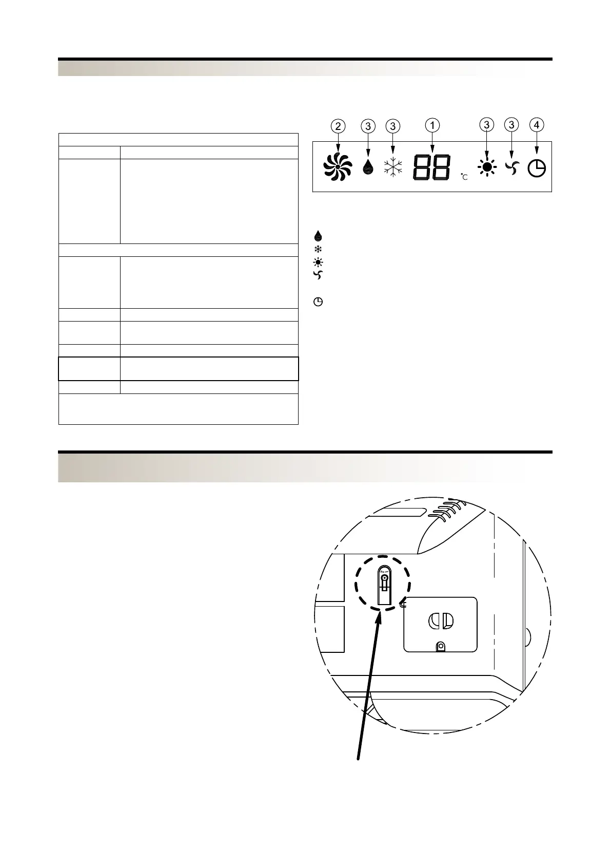 - First press: Cooling with set point 25°C, automatic ventila-