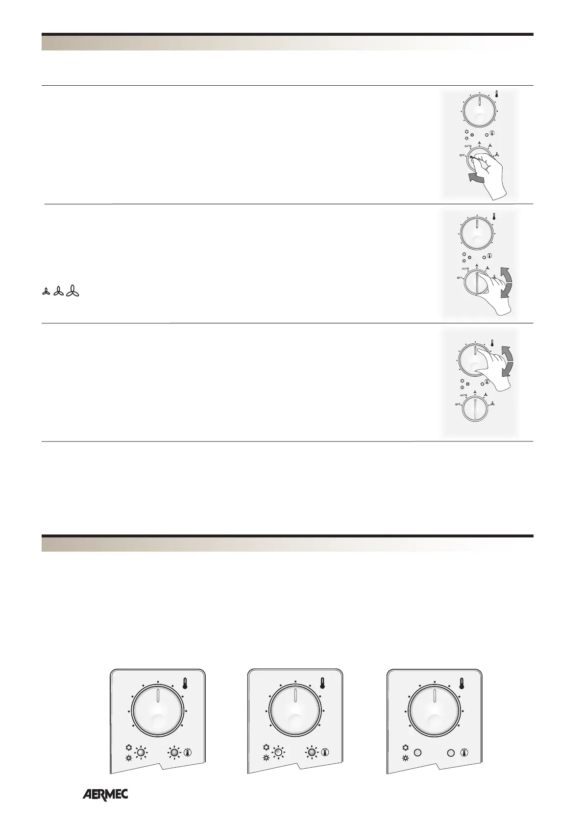 AUTO The thermostat maintains the set temperature changing the fan speed in Automatic Mode in
