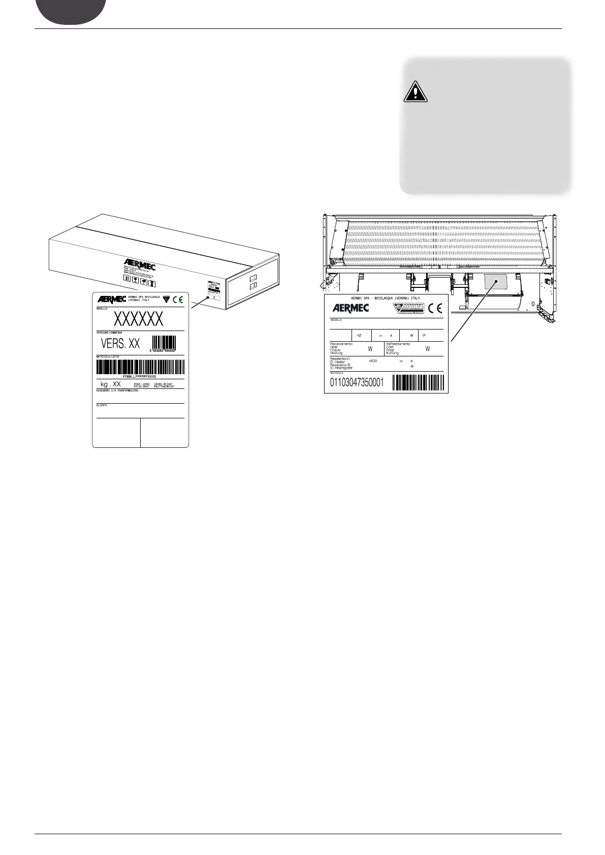Postaall'internodell'unità,riportaidatiidentificativietecnicidelprodotto.