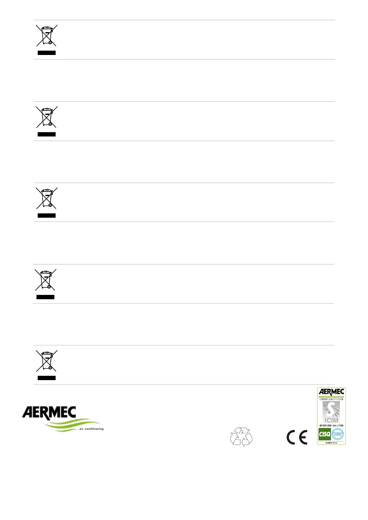 AERMEC S.p.A. reserves the right to make all modification deemed necessary for improving the product at any time with any modification of technical data.