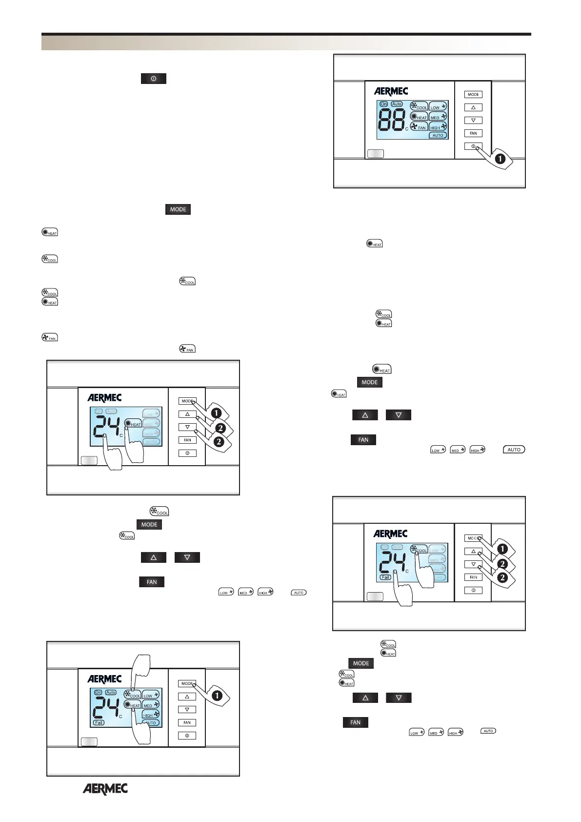 FAN - Der Gebläsekonvektor wird in der Betriebsart “Nur Lüftung”, d.h. auch wenn Heizkessel, Wärpumpe und Chiller ausgeschaltet sind.