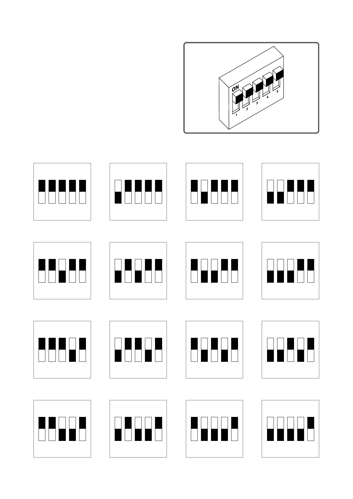 5-pin DIP switches are binary codes where 1 indicates the lowest