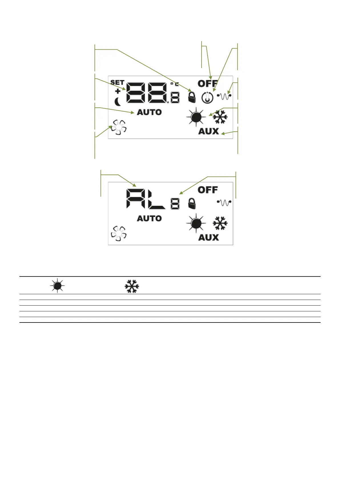The list of alarms reported by the user interface is indicated in the “Alarms signal” section. Below is a table that identies other possible signals that may appear during normal