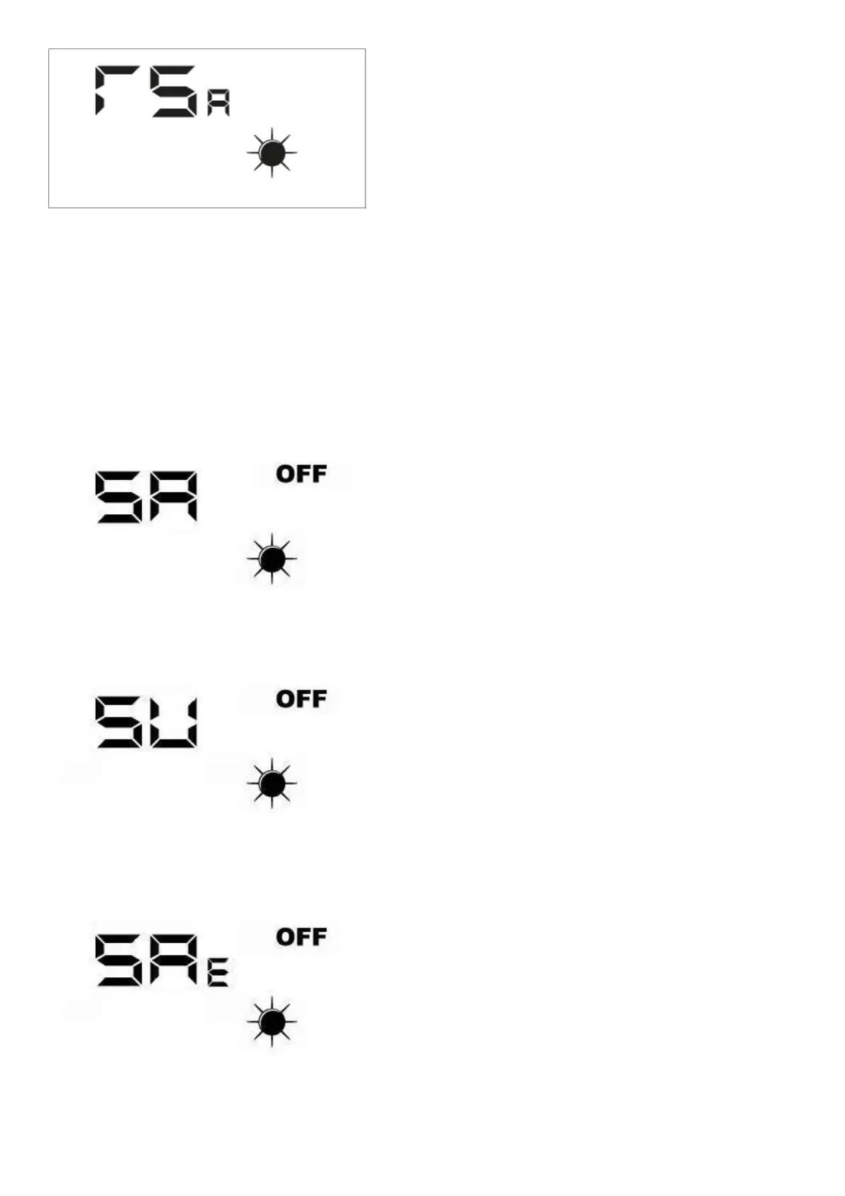 — TSA = 1 → External air probe installed outdoors (The probe that must be used for outdoor installation is the KSAE accessory)