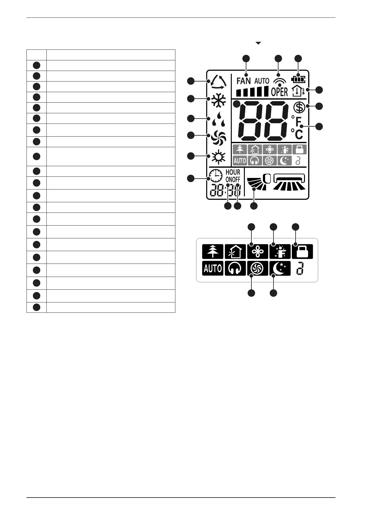 display of the indoor unit (internal temperature or