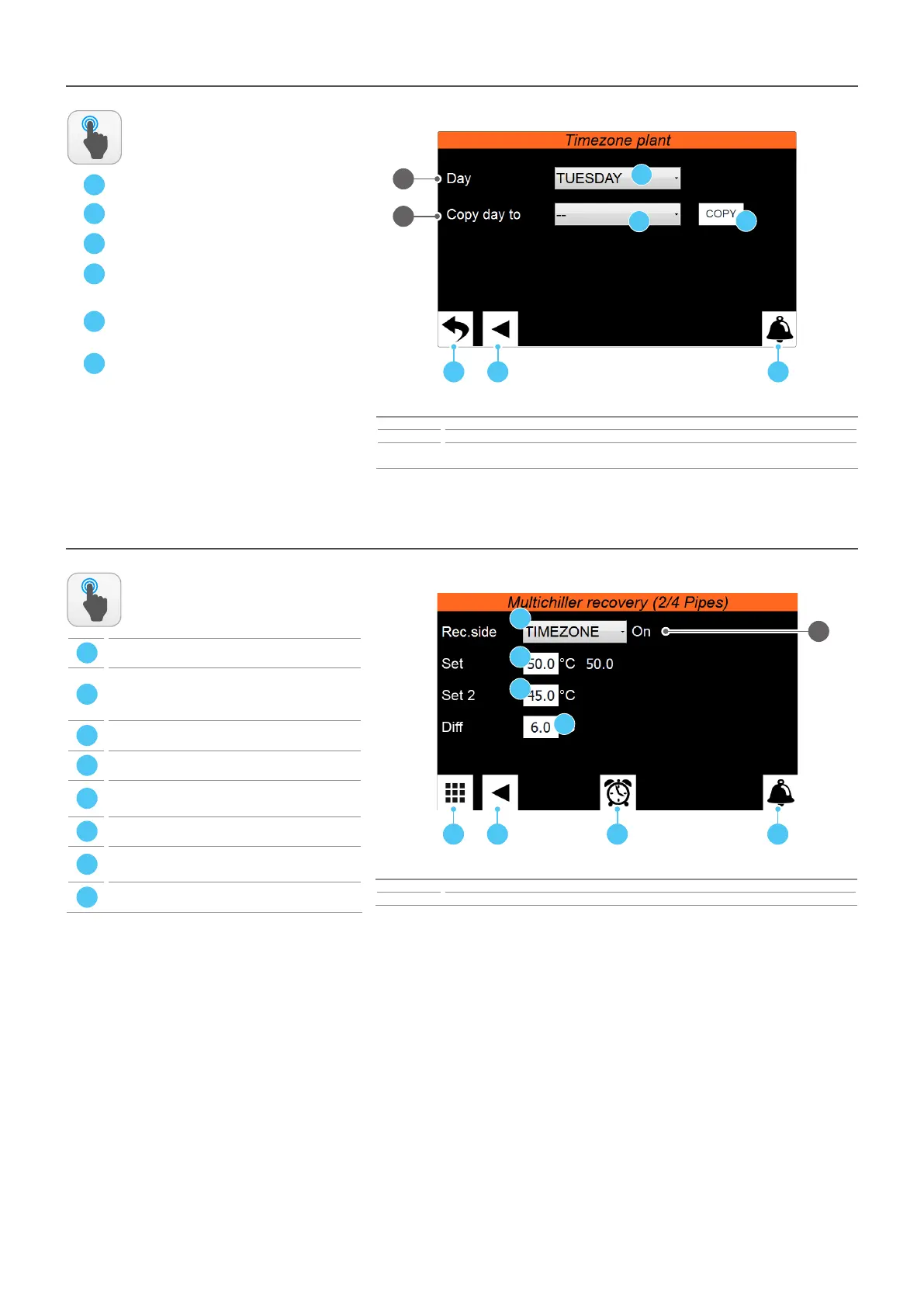 ON/OFF - Main 2/4-pipe system recovery side funconing sengs (visible if mulpurpose units are present)