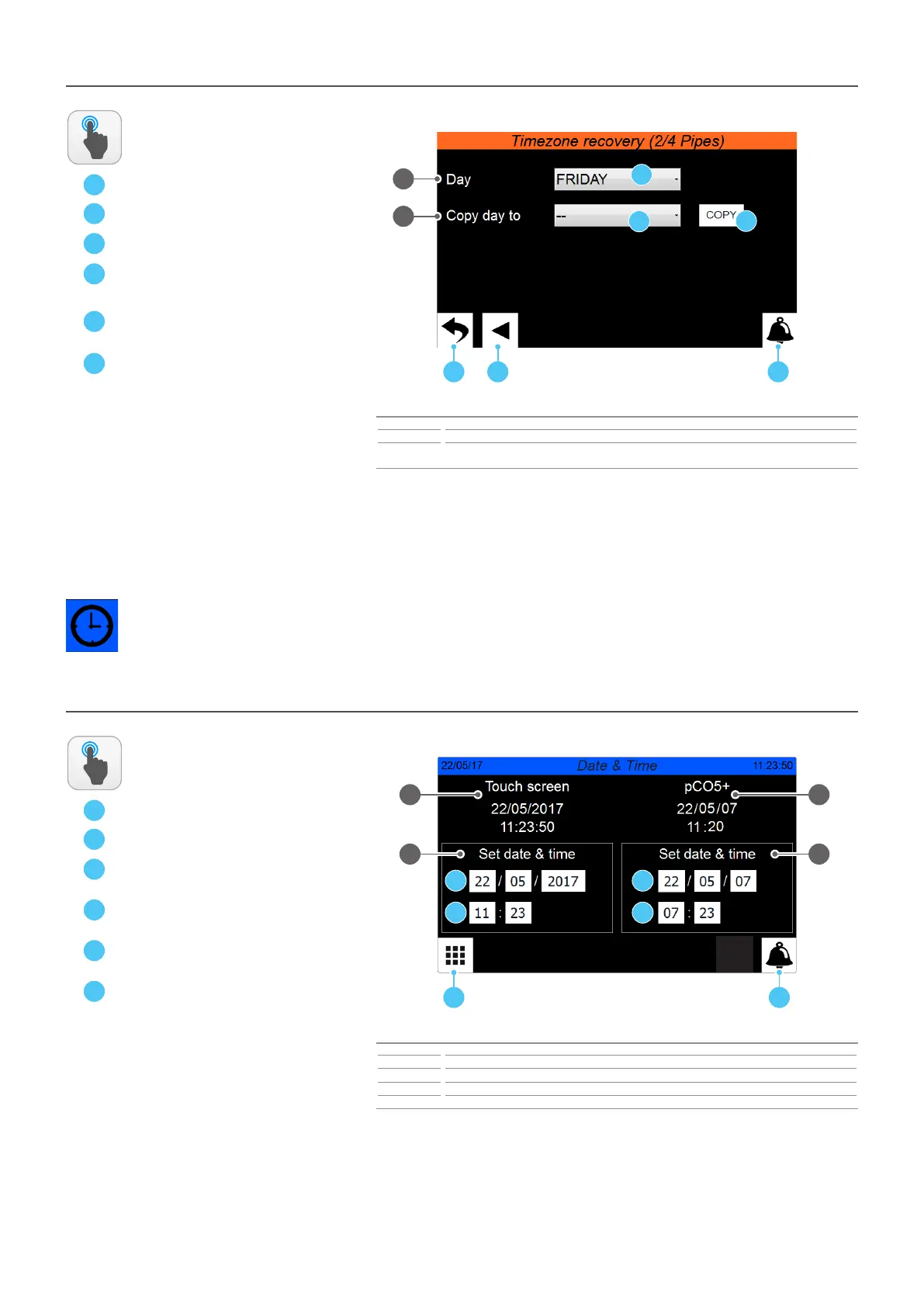 1 Indicates the actual date and time set on the pCO5+ board timer