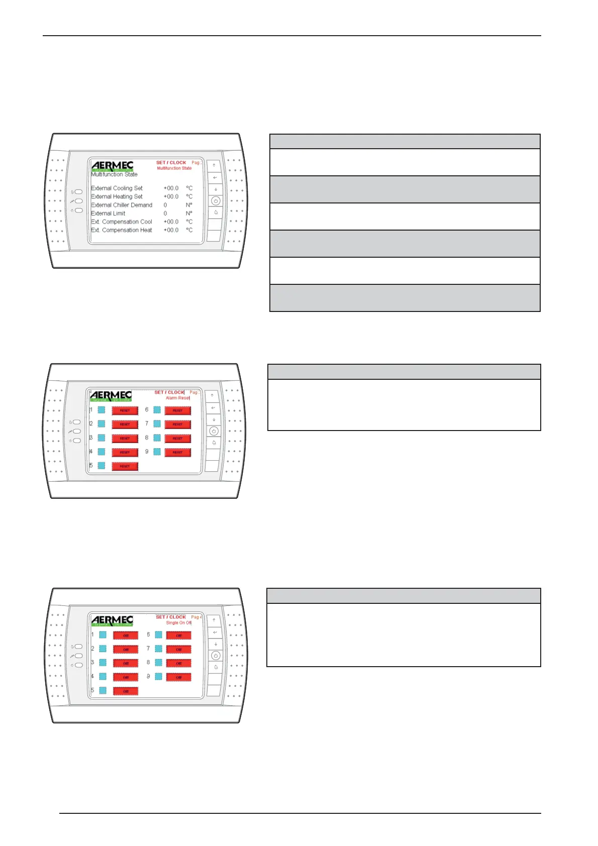 This window allows access to alarms reset of the individual chilers. A chiller