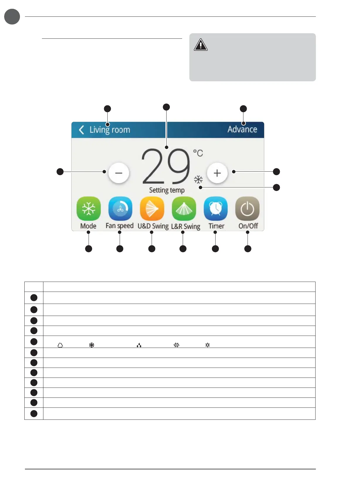 Pressing this icon activates the advanced settings window for the selected indoor unit (the functions available through