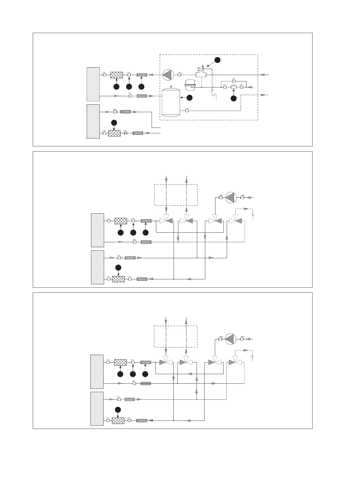 Negli schemi delle versioni a pompa di calore il rettangolo tratteggiato rappresenta i componenti consigliati nel rettangolo