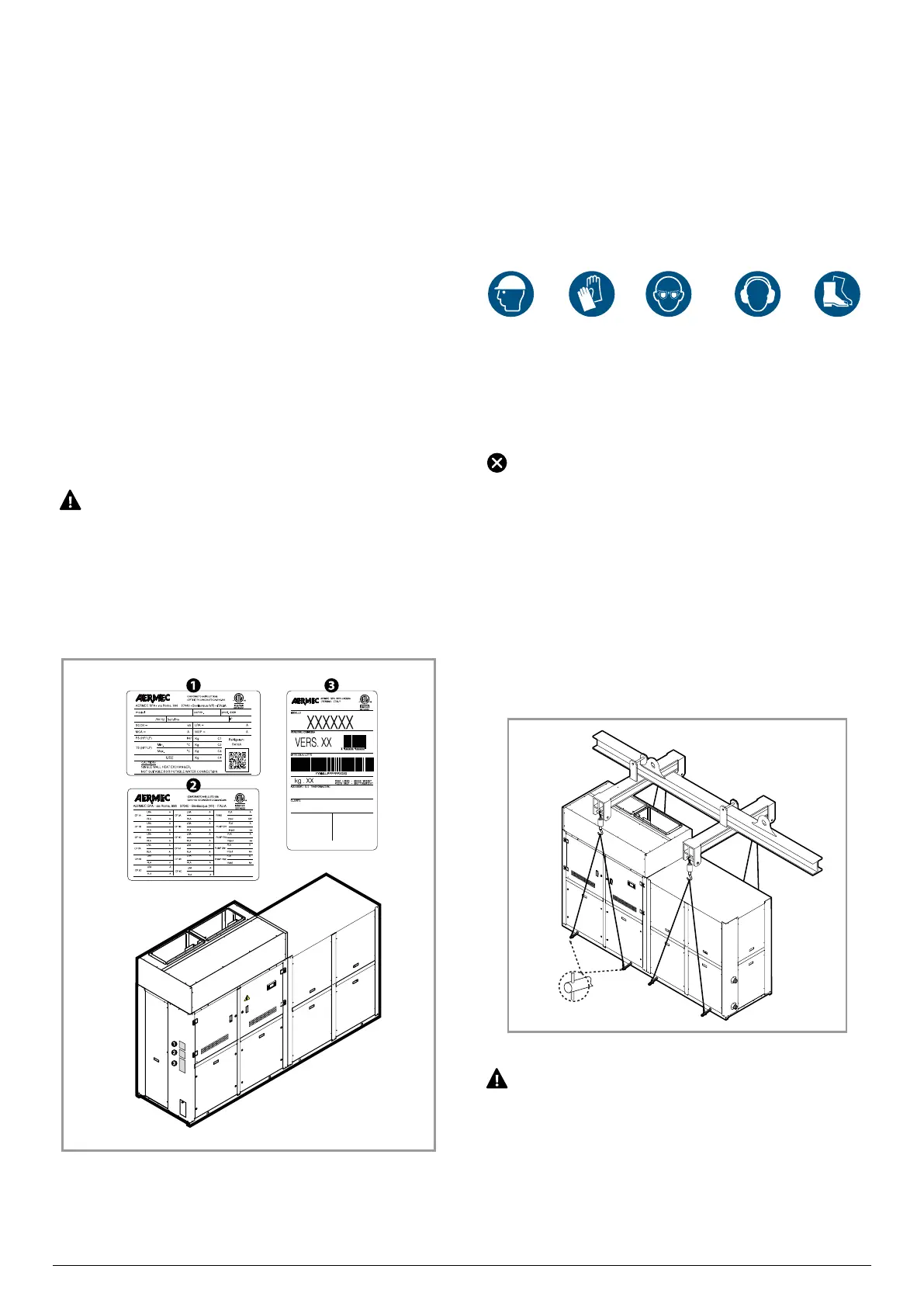 — Before lifting, check the specic weight on the technical plate;