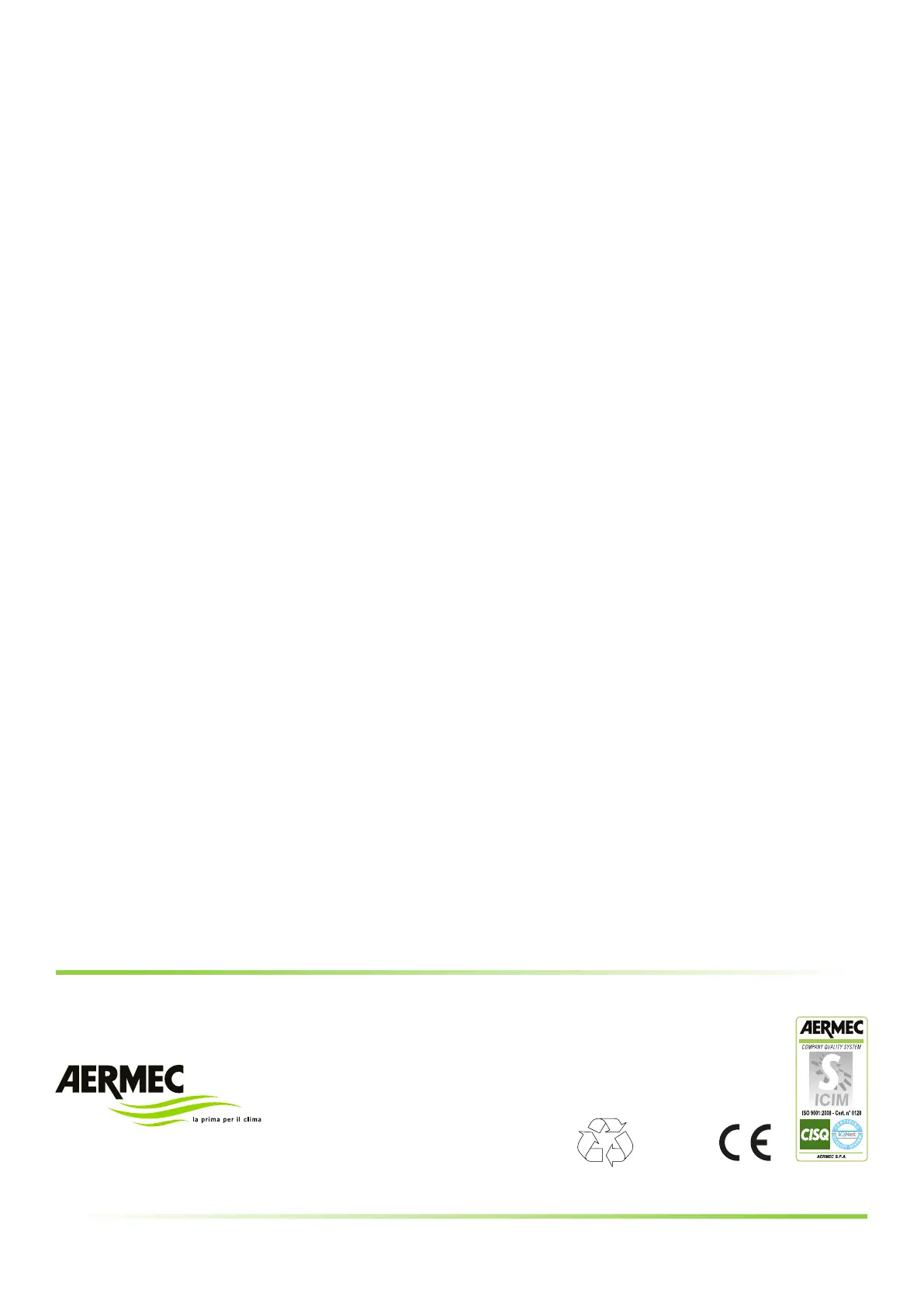 Aermec si riserva la facoltà di apportare in qualsiasi momento tutte le modifiche ritenute necessarie per il miglioramento del prodotto.