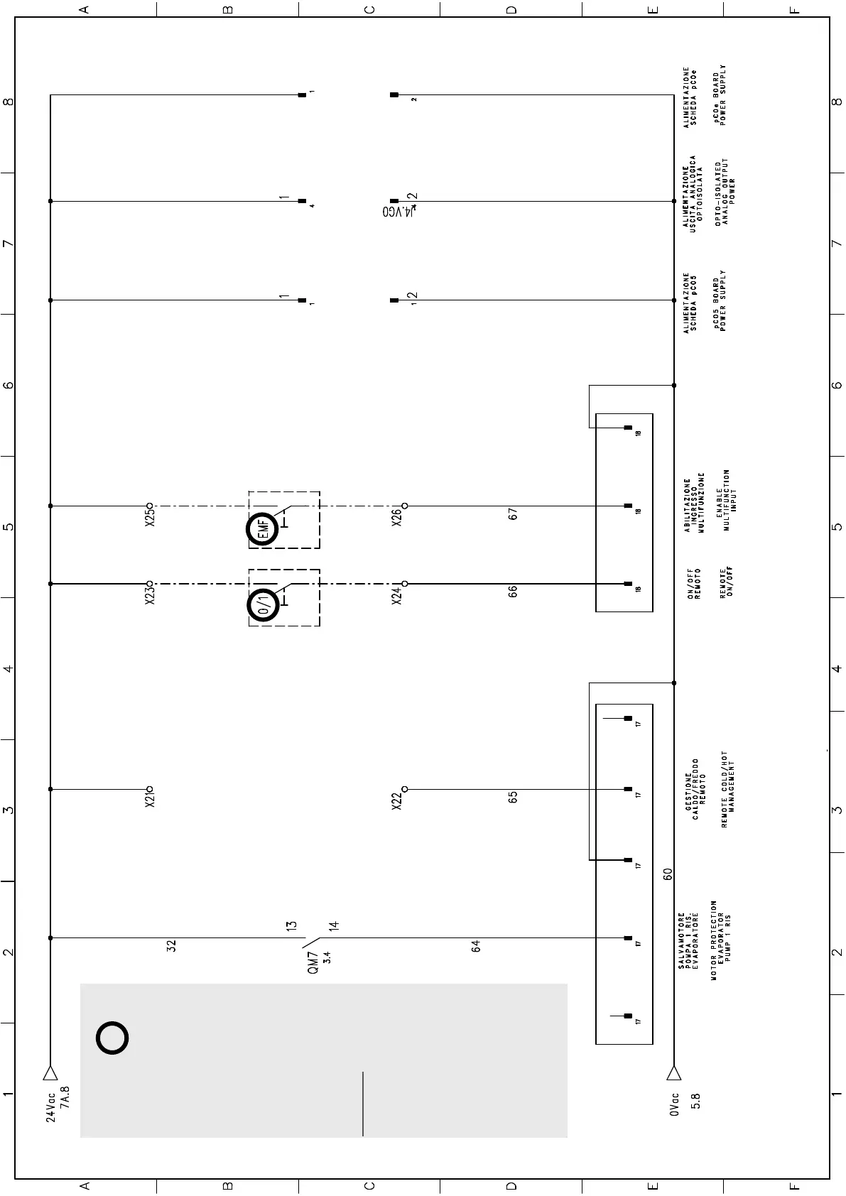 the auxiliary control board points highlighted with a circle are