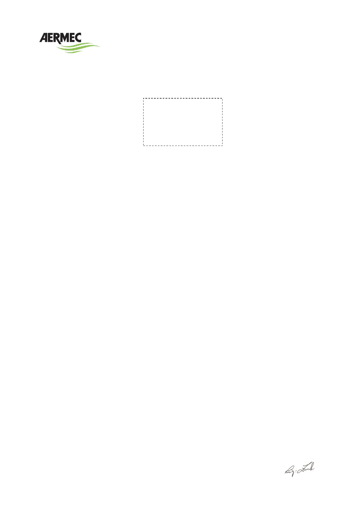 Dichiariamo inoltre che, al momento dell'immissione sul mercato Europeo di tale apparecchiatura precaricata da parte di Aermec S.p.A (che importa o produce