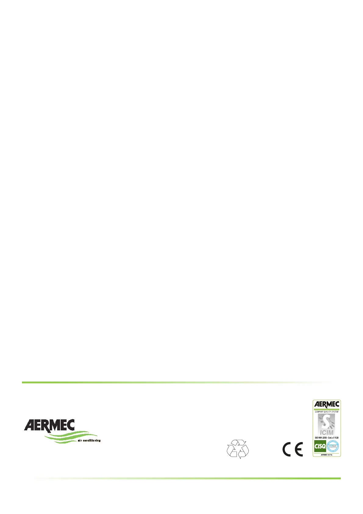 Aermec reserves the right to make all modification deemed necessary for improving the product at any time with any modification of technical data.