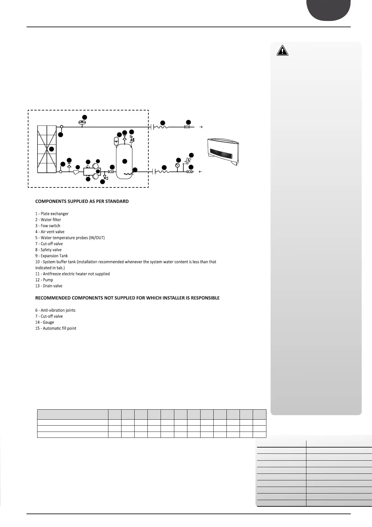 10 - System buffer tank (installaon recommended whenever the system water content is less than that