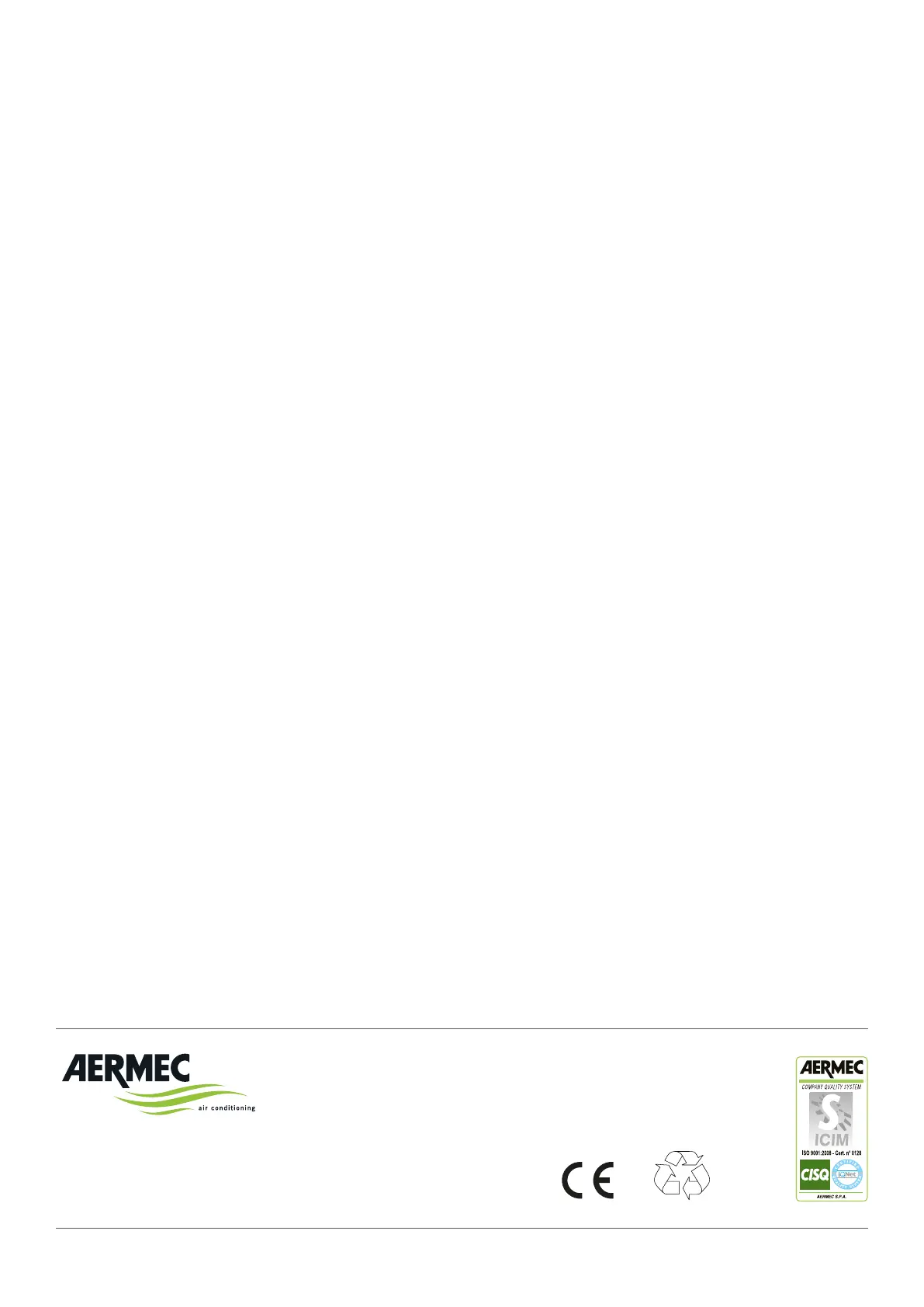 Aermec reserves the right to make all modification deemed necessary for improving the product at any time with any modification of technical data.