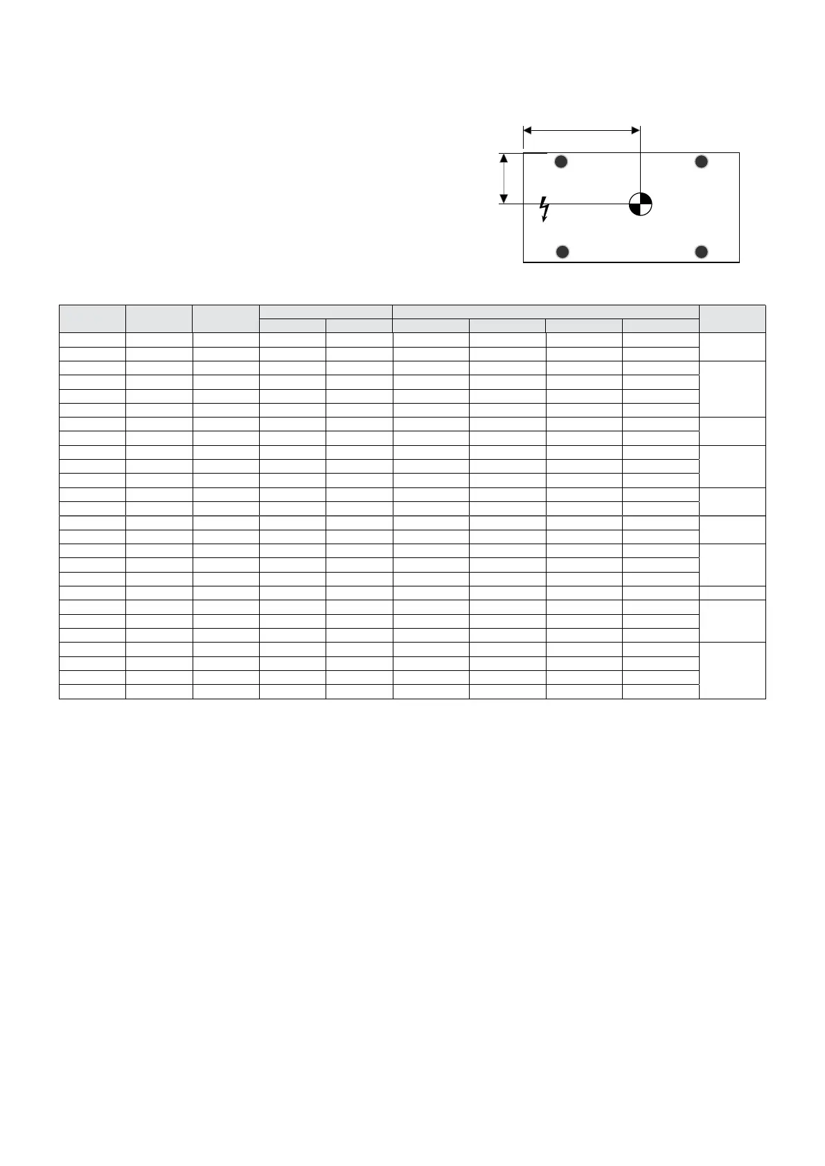 Barycentre Weight distribution percentage on supports unit operating (%)