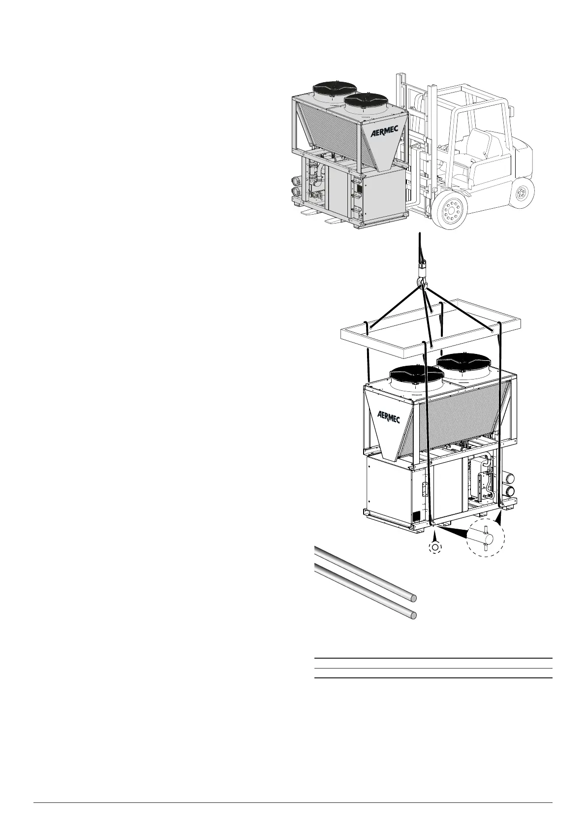 Before handling the unit, verify the lifting capacity of the machines used.