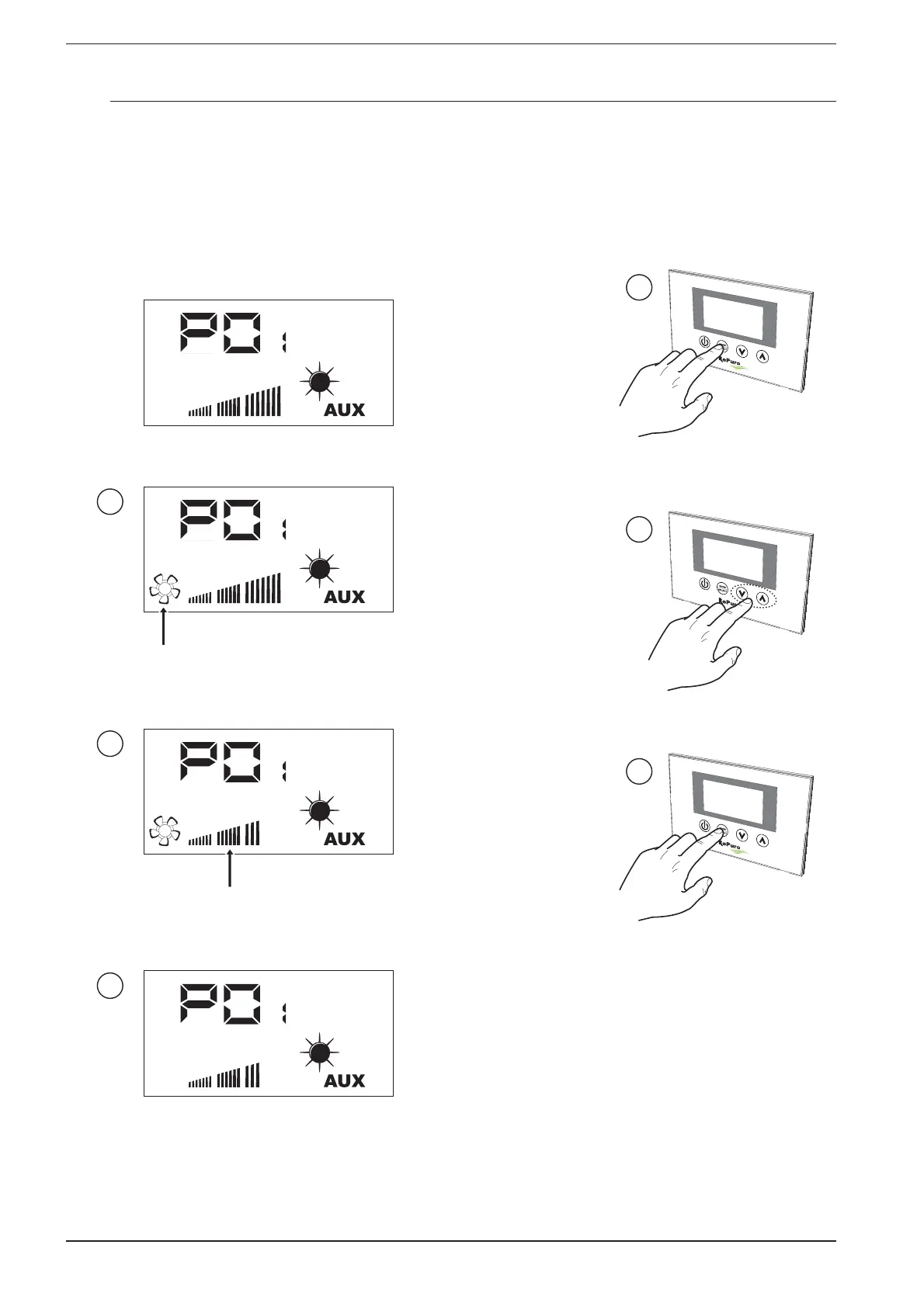 Durante la modalità manuale il ventilatore di immissione viene attivato alla velocità impostata nel parametro PO1; tale parame-