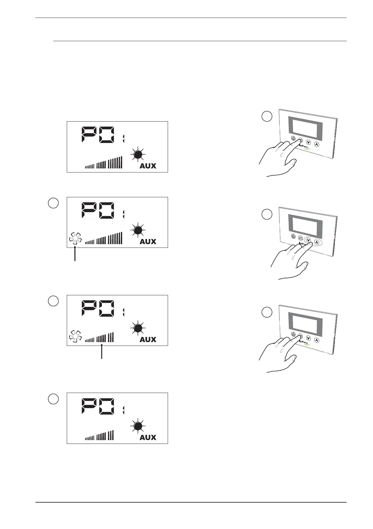 During manual mode the supply fan speed is activated at the speed set by parameter PO1. This parameter can be set varying
