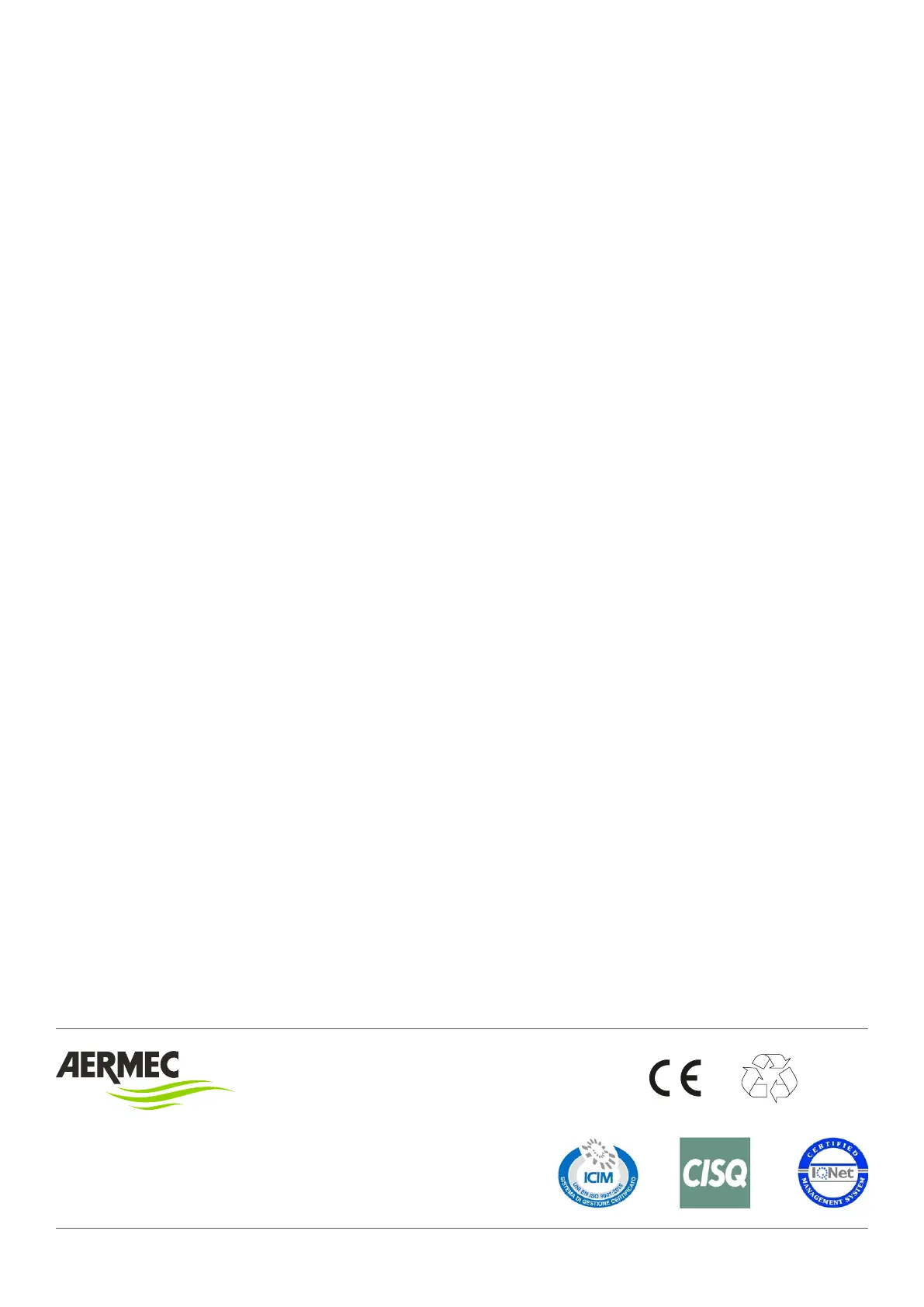 Aermec reserves the right to make all modification deemed necessary for improving the product at any time with any modification of technical data.