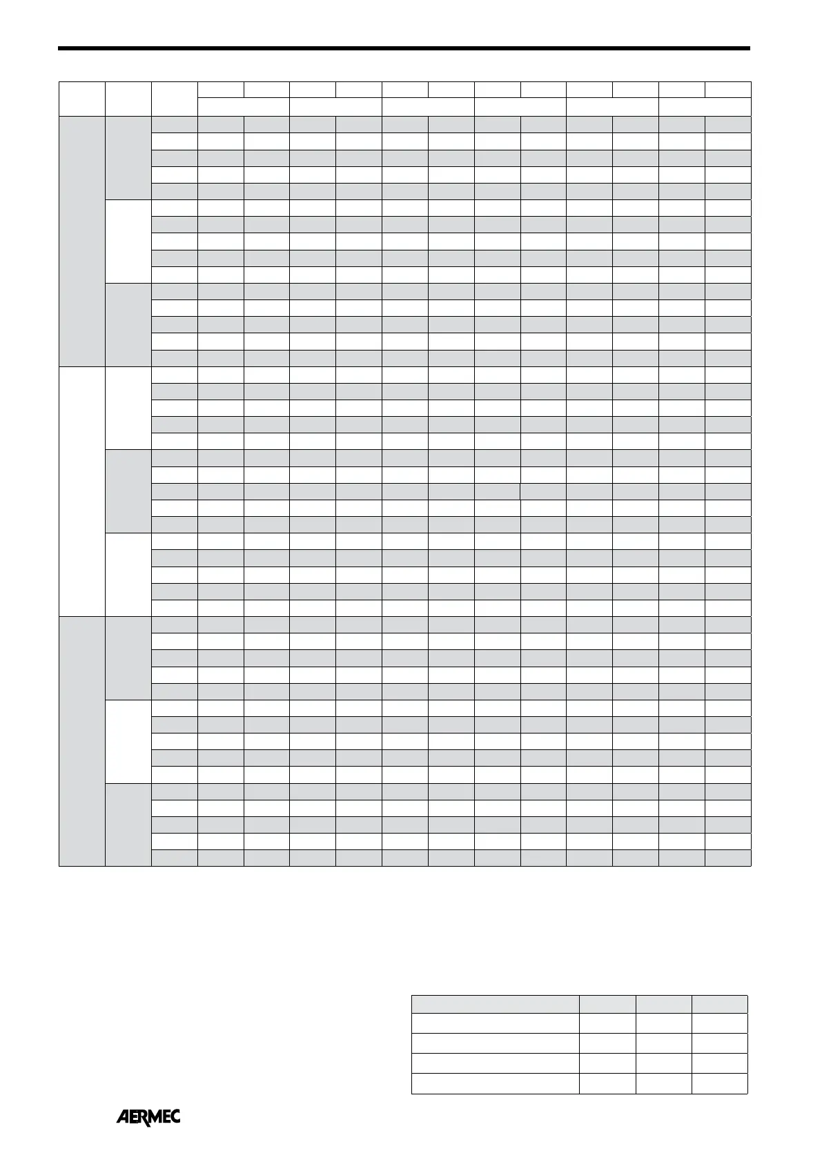 the values shown in the table must be multiplied by the following