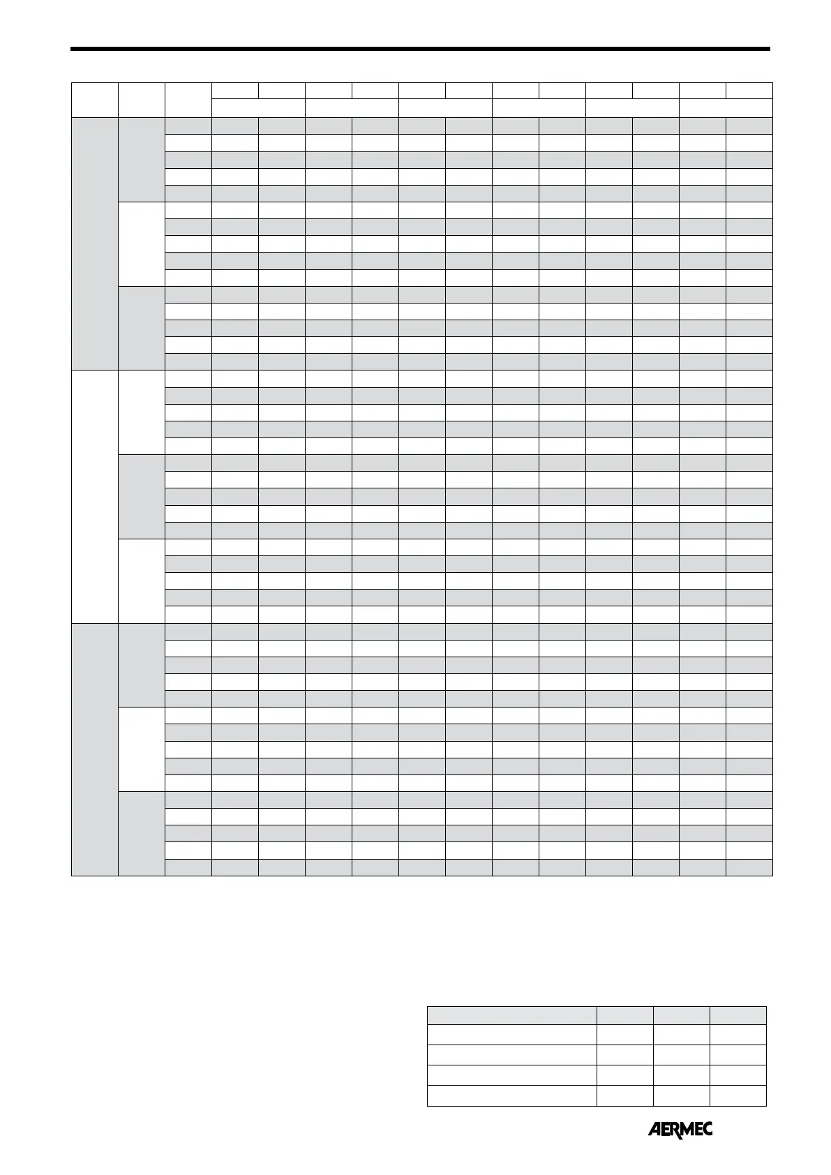 the values shown in the table must be multiplied by the following
