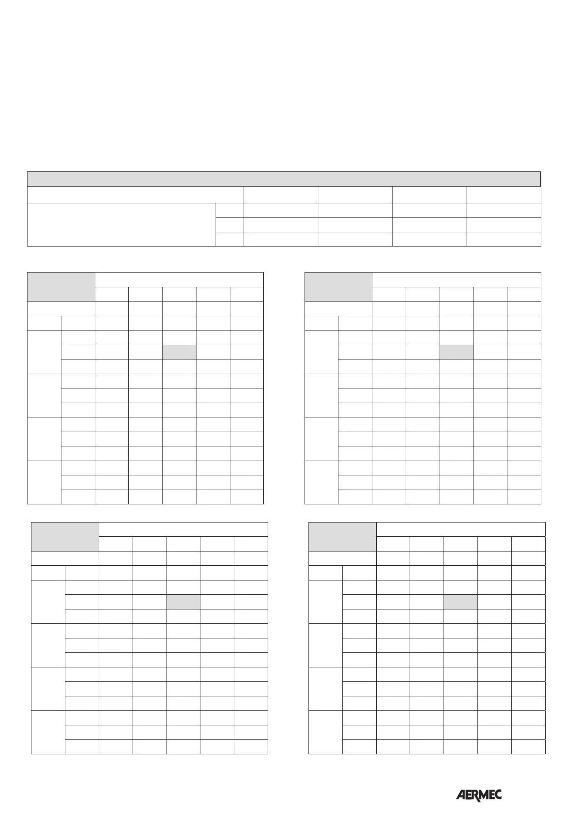 The power yielded by the heating only coils installed on the fan coils (double-circuit or BV accessory), are stated in table format and are