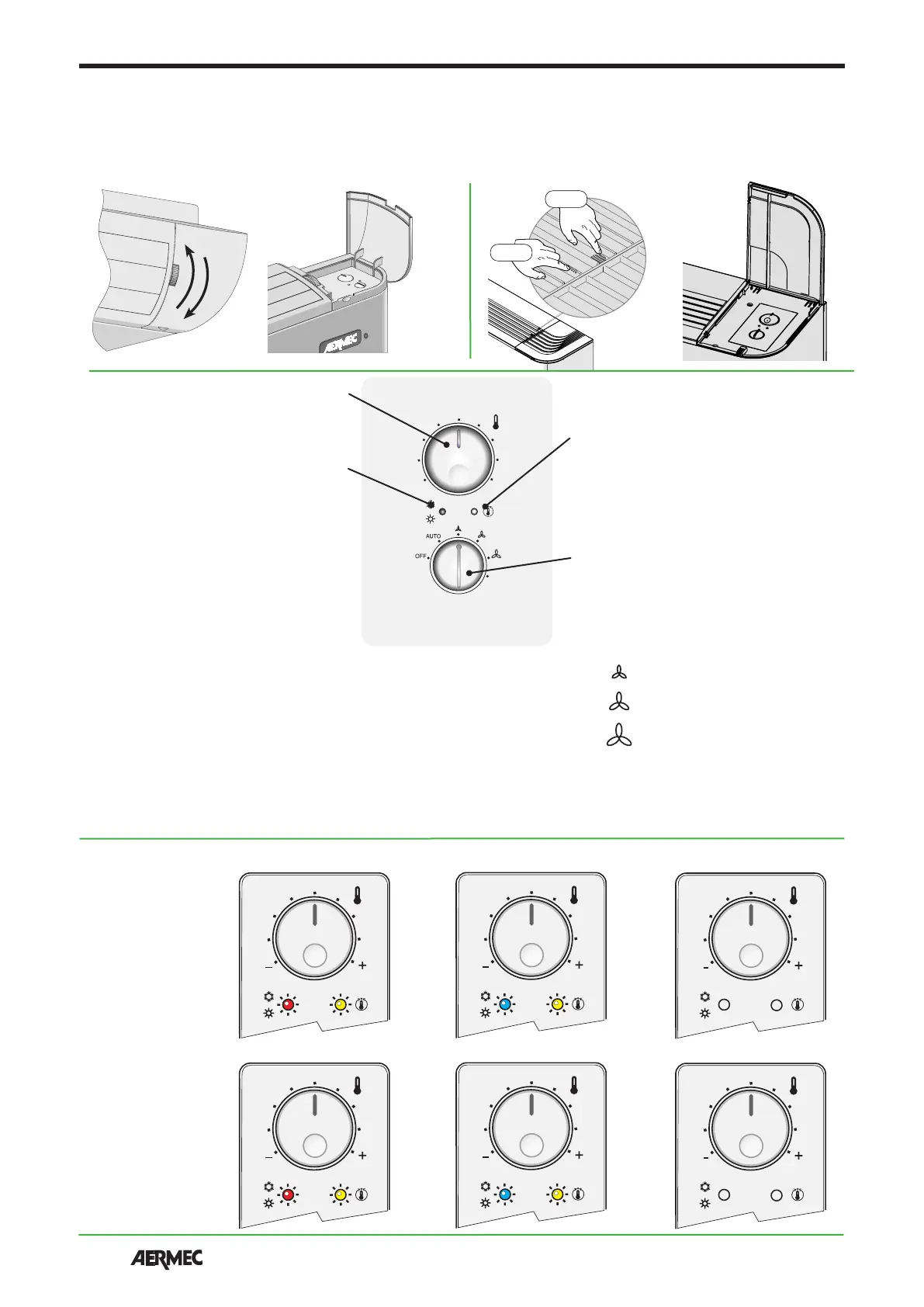El cierre de la aleta da lugar al apagado de la ventilación. Para acceder al tablero de mandos, levantar la tapa de protec-