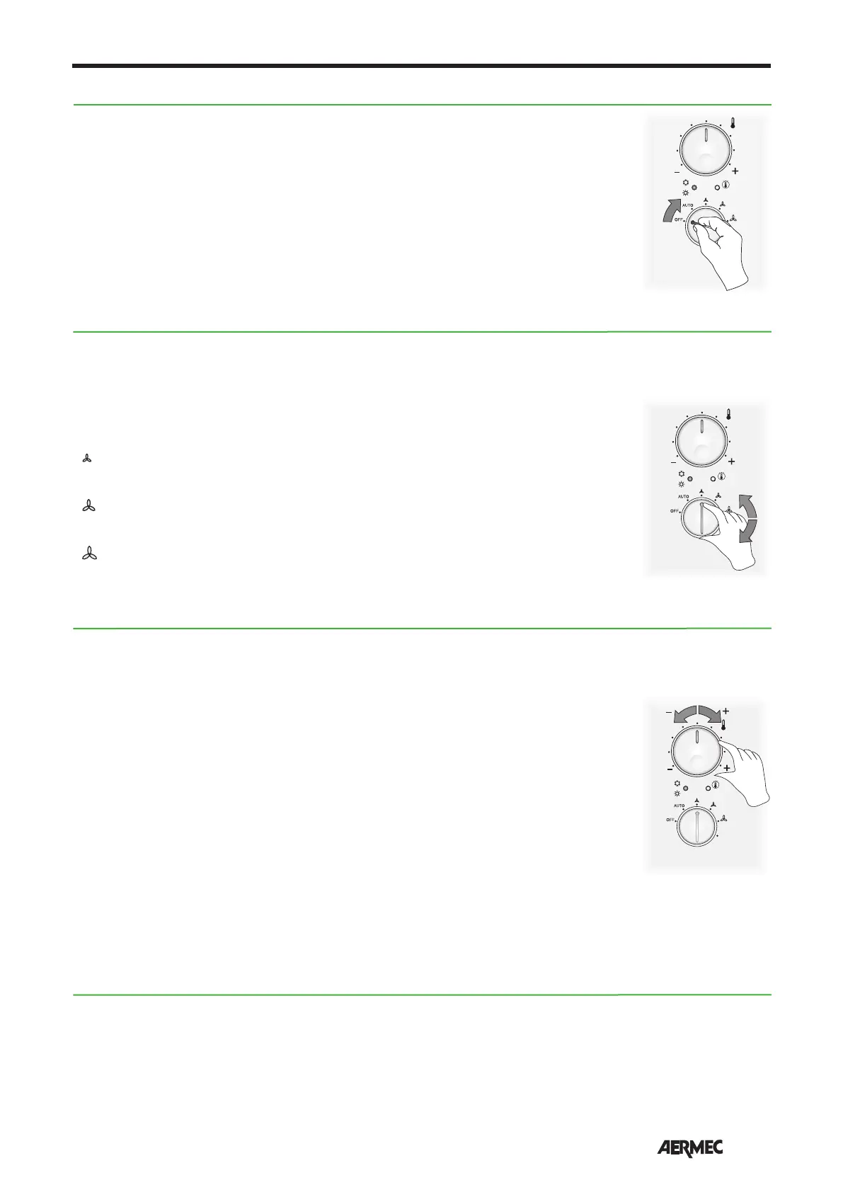- Para encender el fan coil, gire el mando y seleccione una velocidad de ventilación.