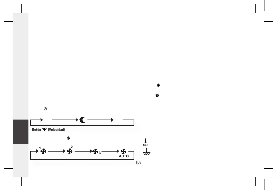 A cada presión del botón ‘ ‘ se modica la velocidad del ventilador según