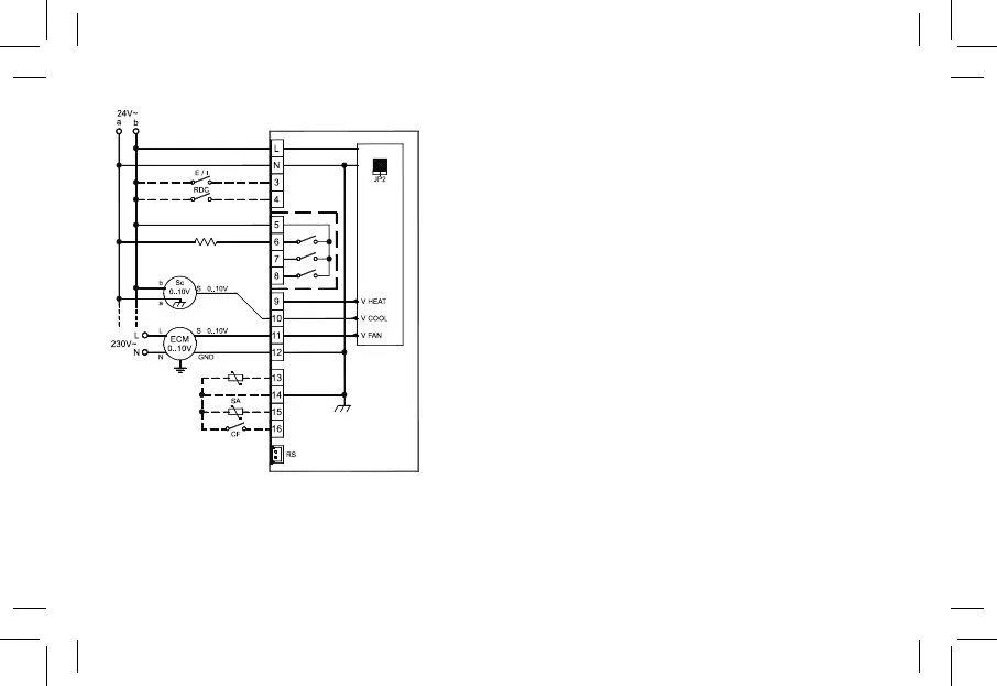 conecte al neutro 230V~ mediante el motor electrónico, en este caso la 24V~