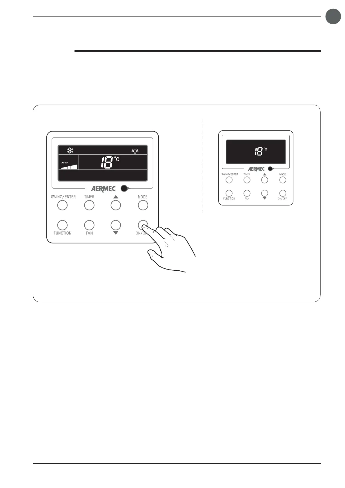 la tecla ON/OFF; cada vez que se presione en sucesión esta tecla, se encenderá o apagará la unidad interna conectada.