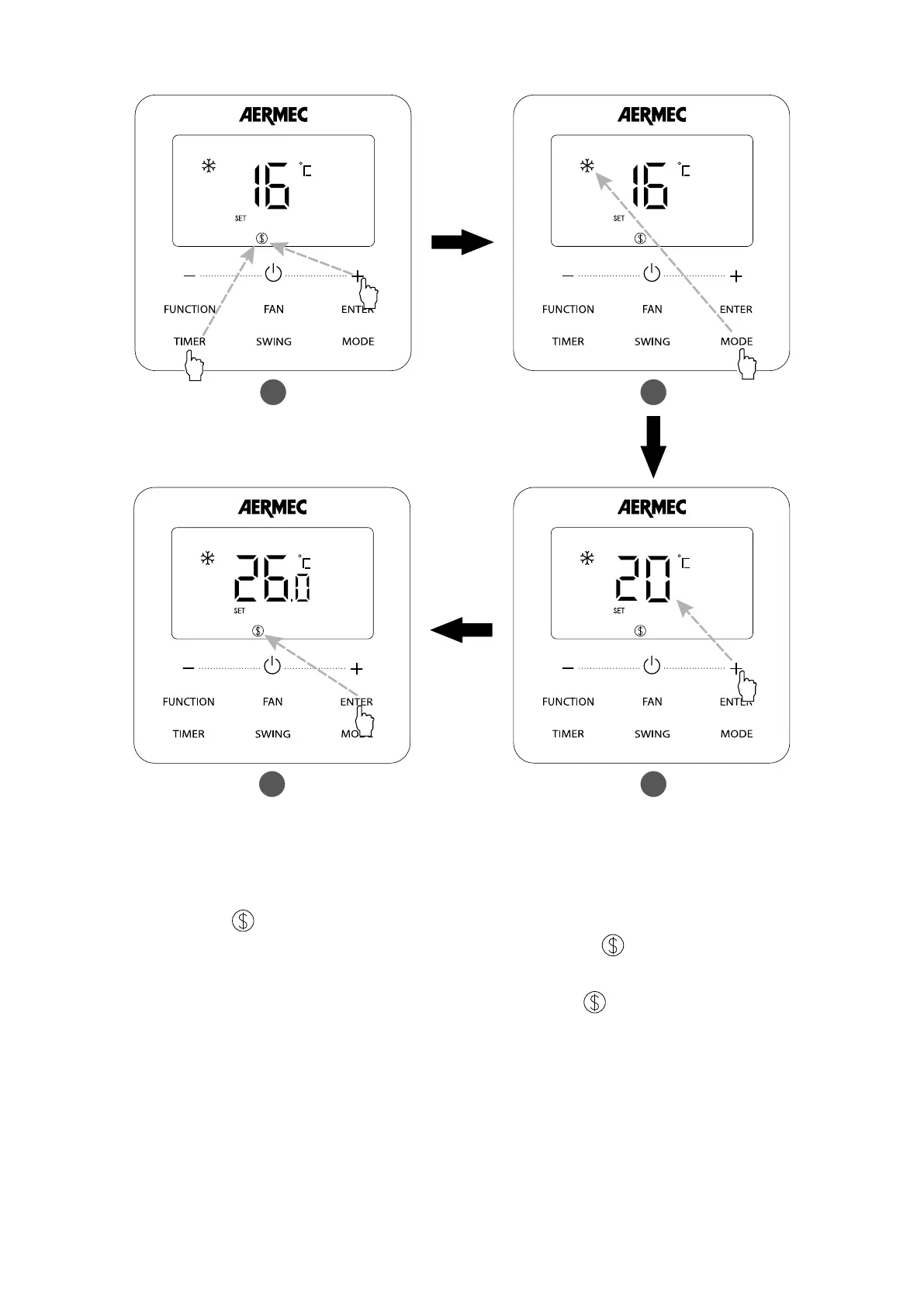 1 Press TIMER and “+” buttons for 5 seconds and set Energy-Saving function in OFF status