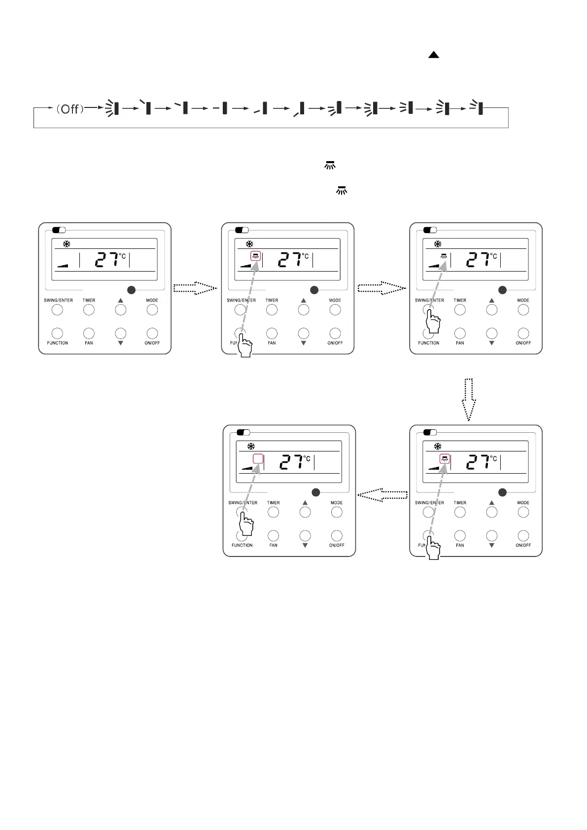 When it is set to be xed swing, press “SWING/ENTER” button, the unit will circularly switch the swing mode according to the order shown below: