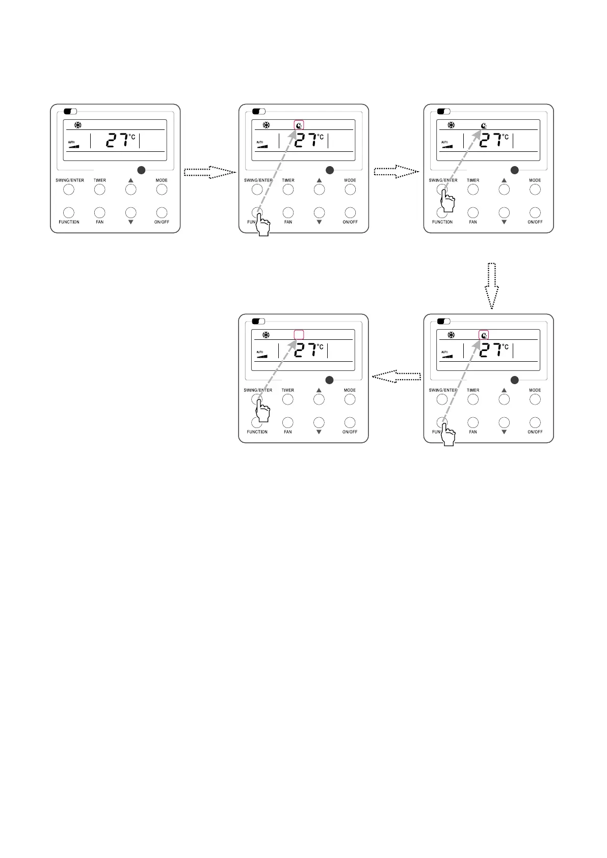 Turn on the unit, without turning on sleep Press “SWING/ENTER” button to