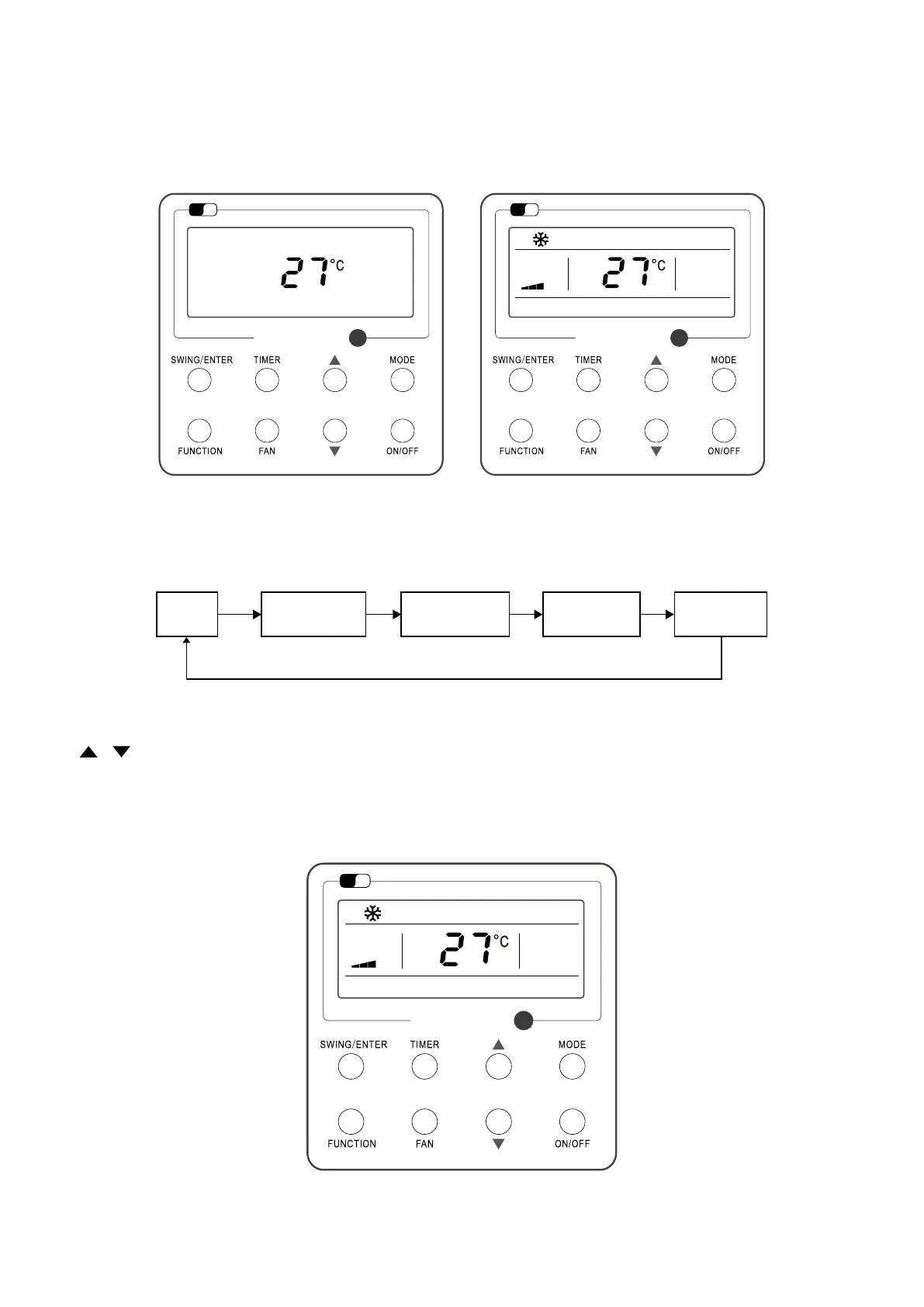 Press or to increase/decrease the preset temperature. If press either of them continuously, the temperature will be increased or decreased by 1°C (1°F) every 0.5s, as