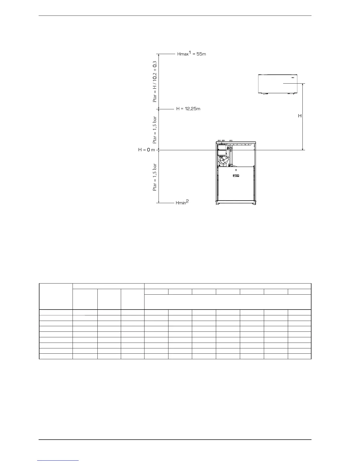 p (calibration) [bar] = H [m] / 10.2 + 0.3.