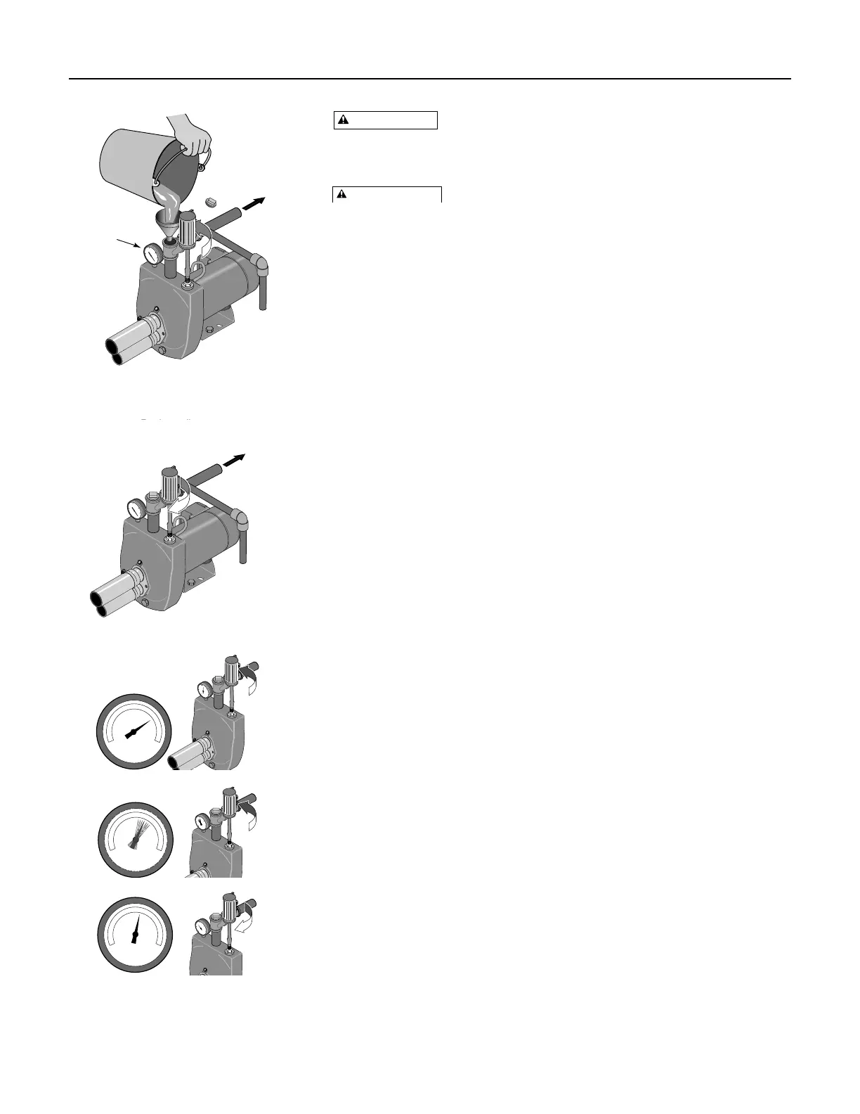 la bomba, retire los tapones de llenado, vuelva a abrir la válvula de con-