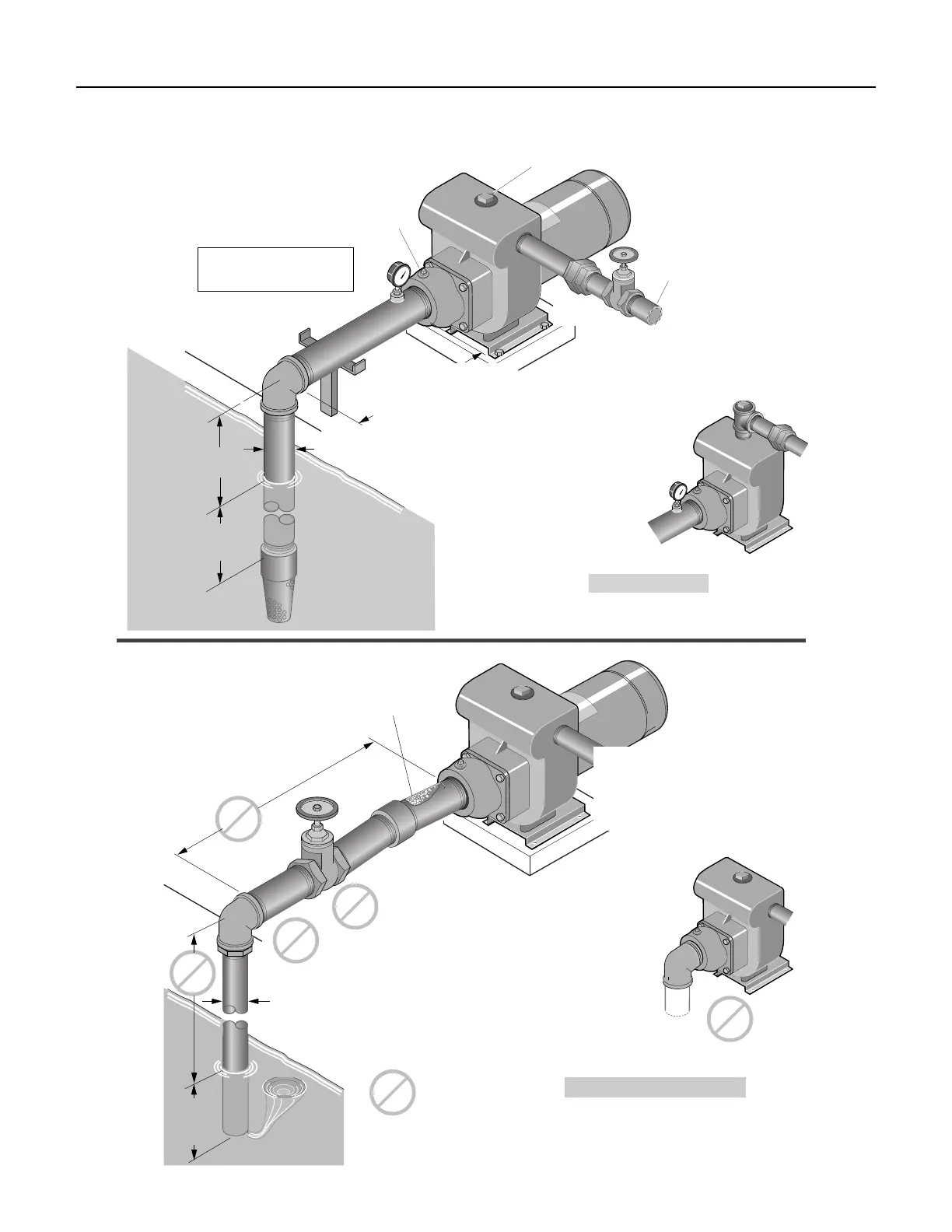 Sur le côté refoulement, éviter :