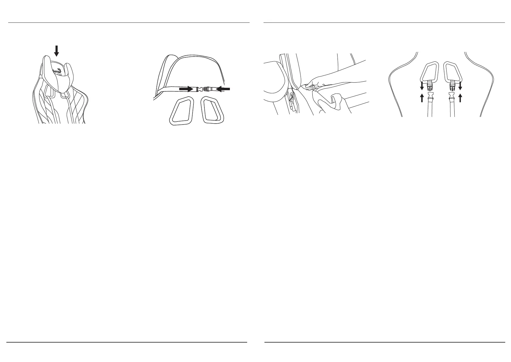1. Put headrest cushion on the backrest. 2. Pull the straps to the back of the backrest and click them