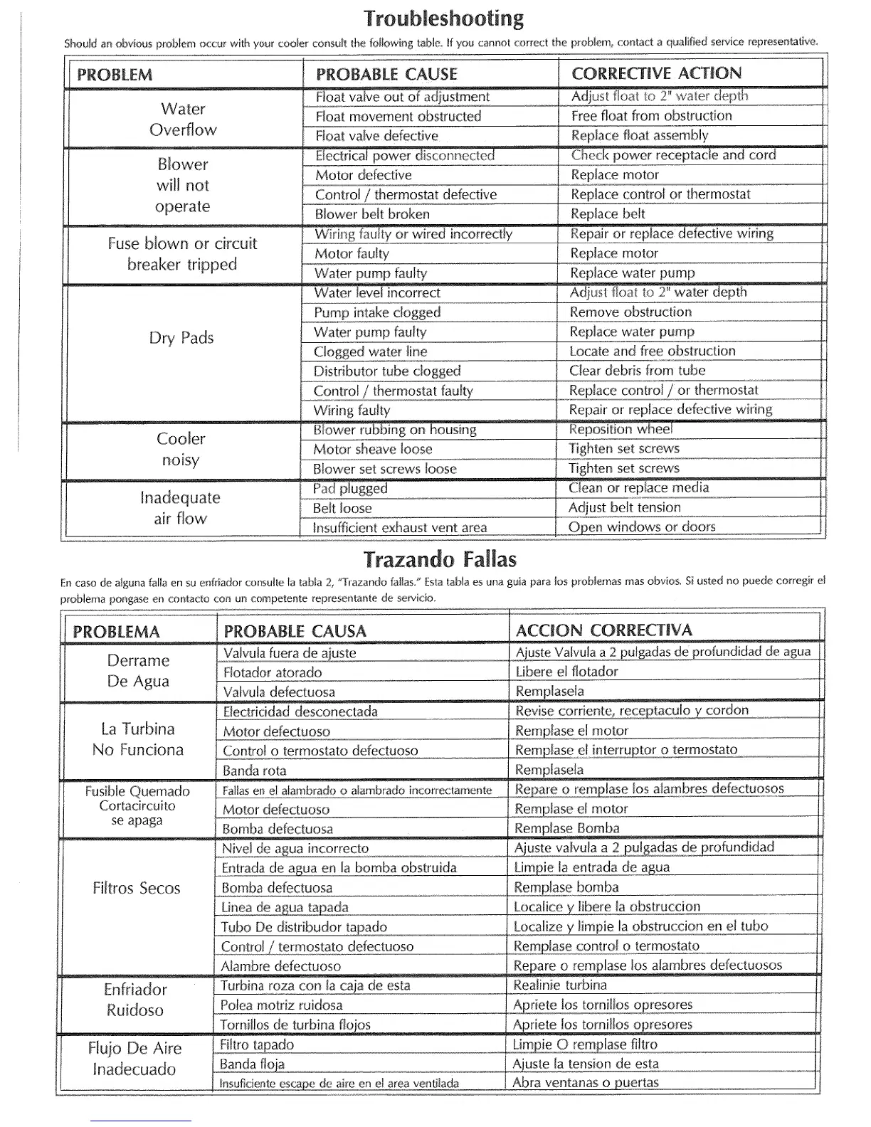 En caso de alguna fa![a en su enftlador consu[te Iatab_a 2, '_Traza_@ofal[as/' Esta_ablaes una guia para _osprobIemas mas obvios. Si usted no p_aedecorregk eJ