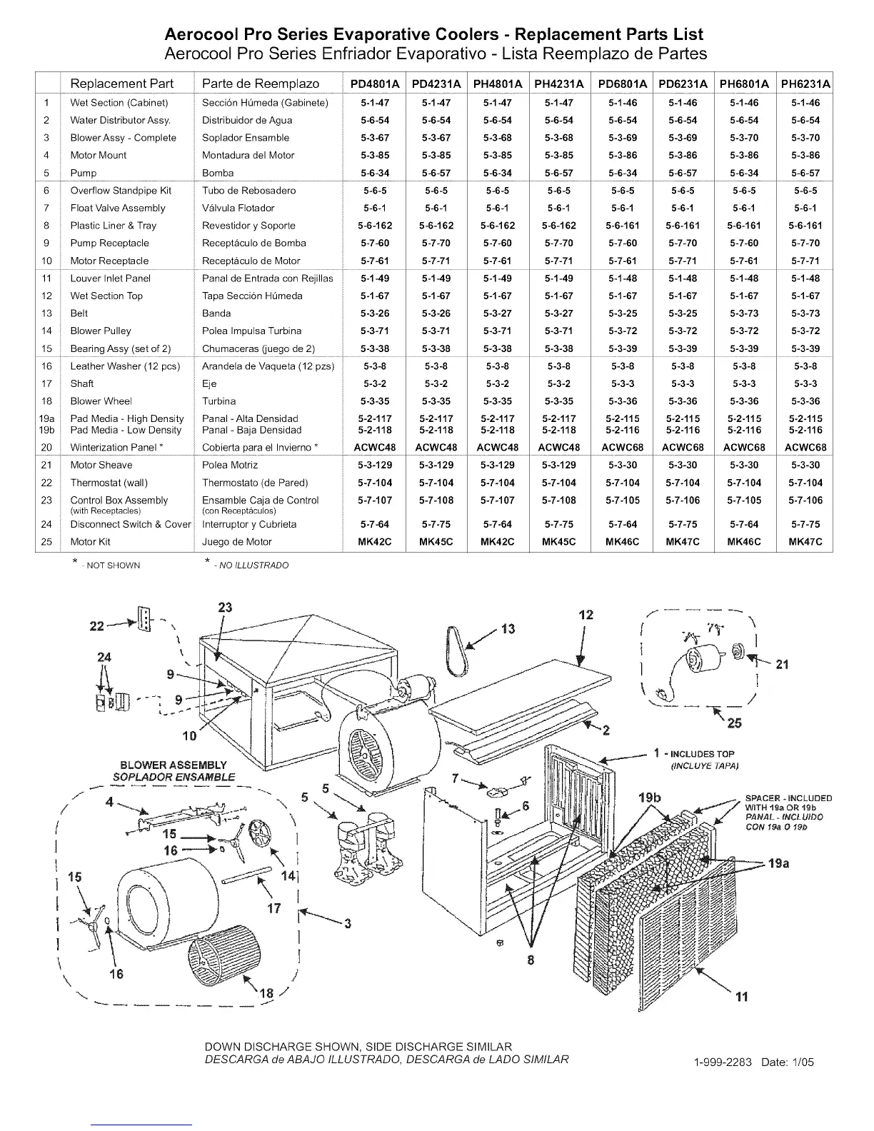DESCARGA de ABAJO ILLUSTRADO, DESCARGA de LADO SIMILAR 1-999-2283 Date: 1/05